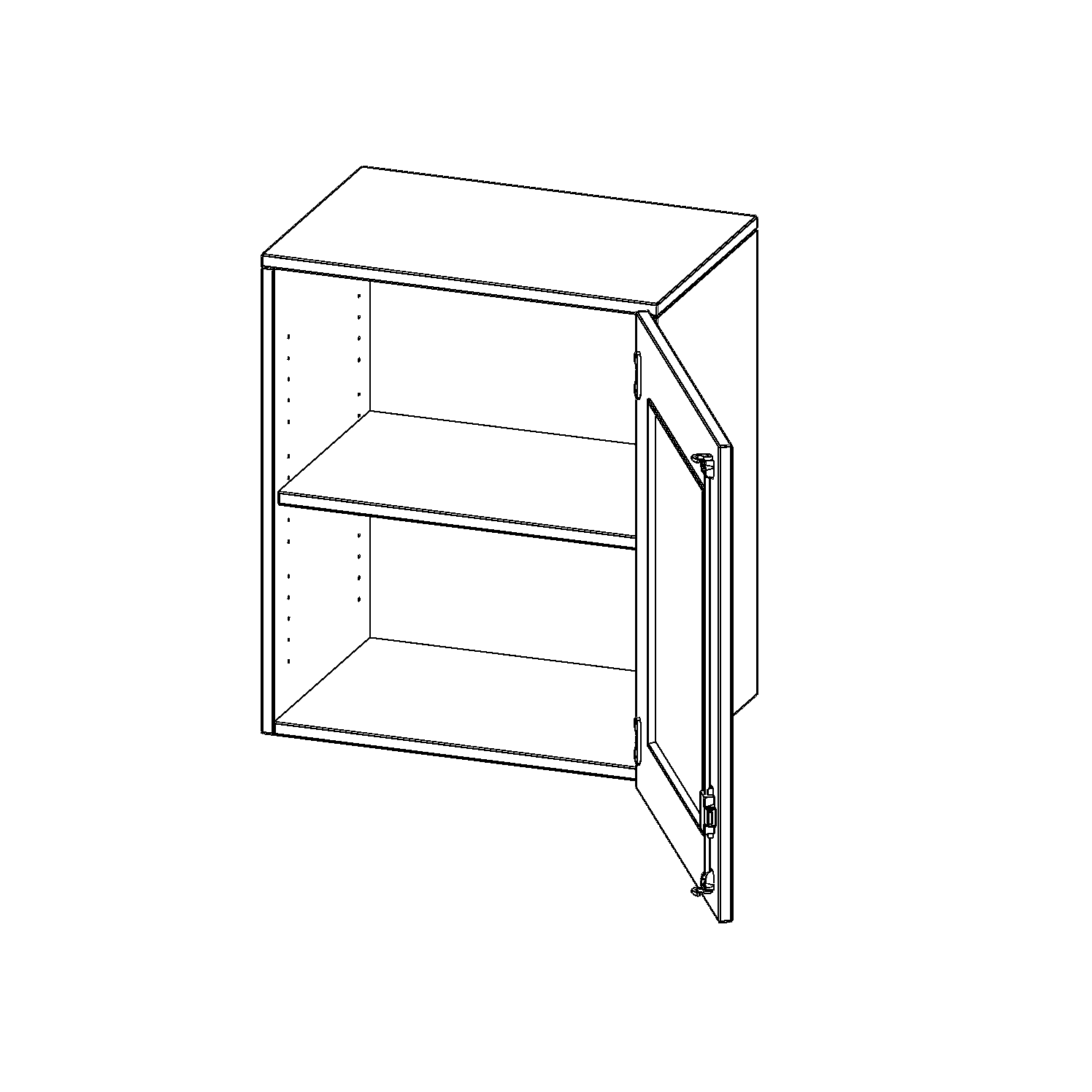 Die Türen öffnen 270°, sind abschließbar und mit einem Glasausschnitt versehen. Die Glaseinlage besteht aus Sicherheitsgründen aus Acrylglas, ist von innen eingesetzt und auf der Tür von innen verschraubt. So sehen Sie schnell, was im Schrank untergebracht ist. Besonders praktisch für Sammlungen.