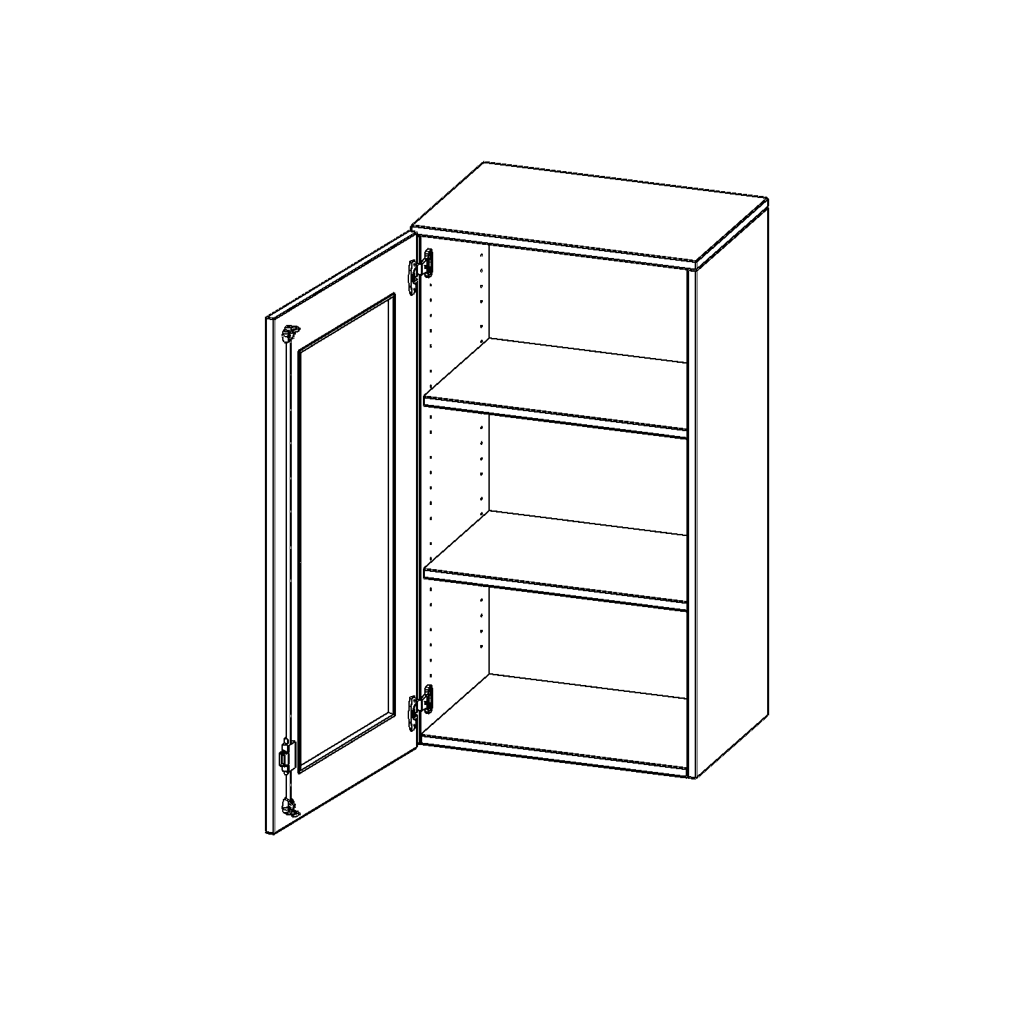 Die Türen öffnen 270°, sind abschließbar und mit einem Glasausschnitt versehen. Die Glaseinlage besteht aus Sicherheitsgründen aus Acrylglas, ist von innen eingesetzt und auf der Tür von innen verschraubt. So sehen Sie schnell, was im Schrank untergebracht ist. Besonders praktisch für Sammlungen.