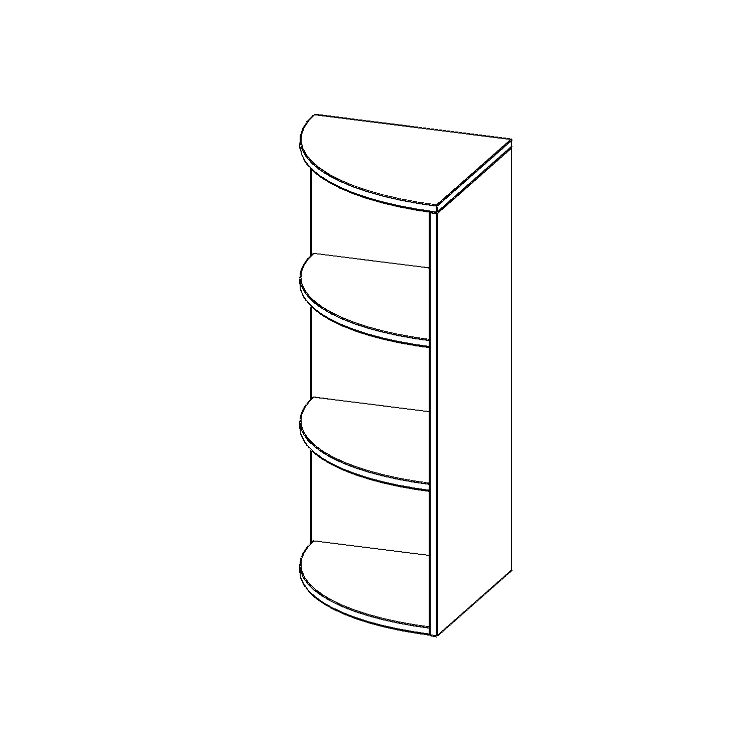 Die evo180 Außeneckregale in Viertelkreisform in verschiedenen Höhen und Tiefen sind ein ganz besonderer Bestandteil unseres evo180 Schrankwandprogrammes. Sie helfen dabei, Ihnen eine Schrankwand im wahrsten Sinne des Wortes "um die Ecke zu bringen". Die Außenecken führen die Schrankwand um nach innen in den Raum hineinragende Ecken fort. Mit den Ausatzegalen nutzen Sie die Raumhöhe optimal aus. Die Rückwand ist als Sichtrückwand ausgeführt.