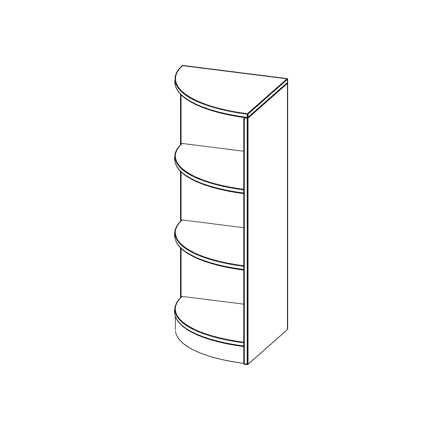 Die evo180 Außeneckregale in Viertelkreisform in verschiedenen Höhen und Tiefen sind ein ganz besonderer Bestandteil unseres evo180 Schrankwandprogrammes. Sie helfen dabei, Ihnen eine Schrankwand im wahrsten Sinne des Wortes "um die Ecke zu bringen". Die Außenecken führen die Schrankwand um nach innen in den Raum hineinragende Ecken fort. Die Rückwand ist als Sichtrückwand ausgeführt.