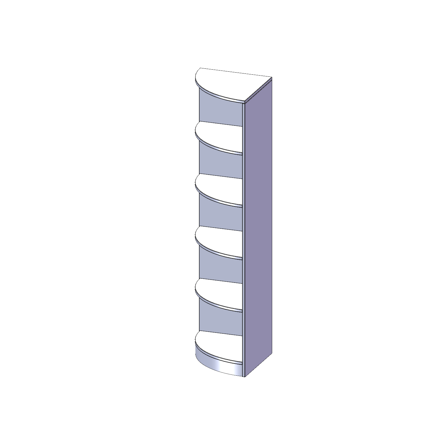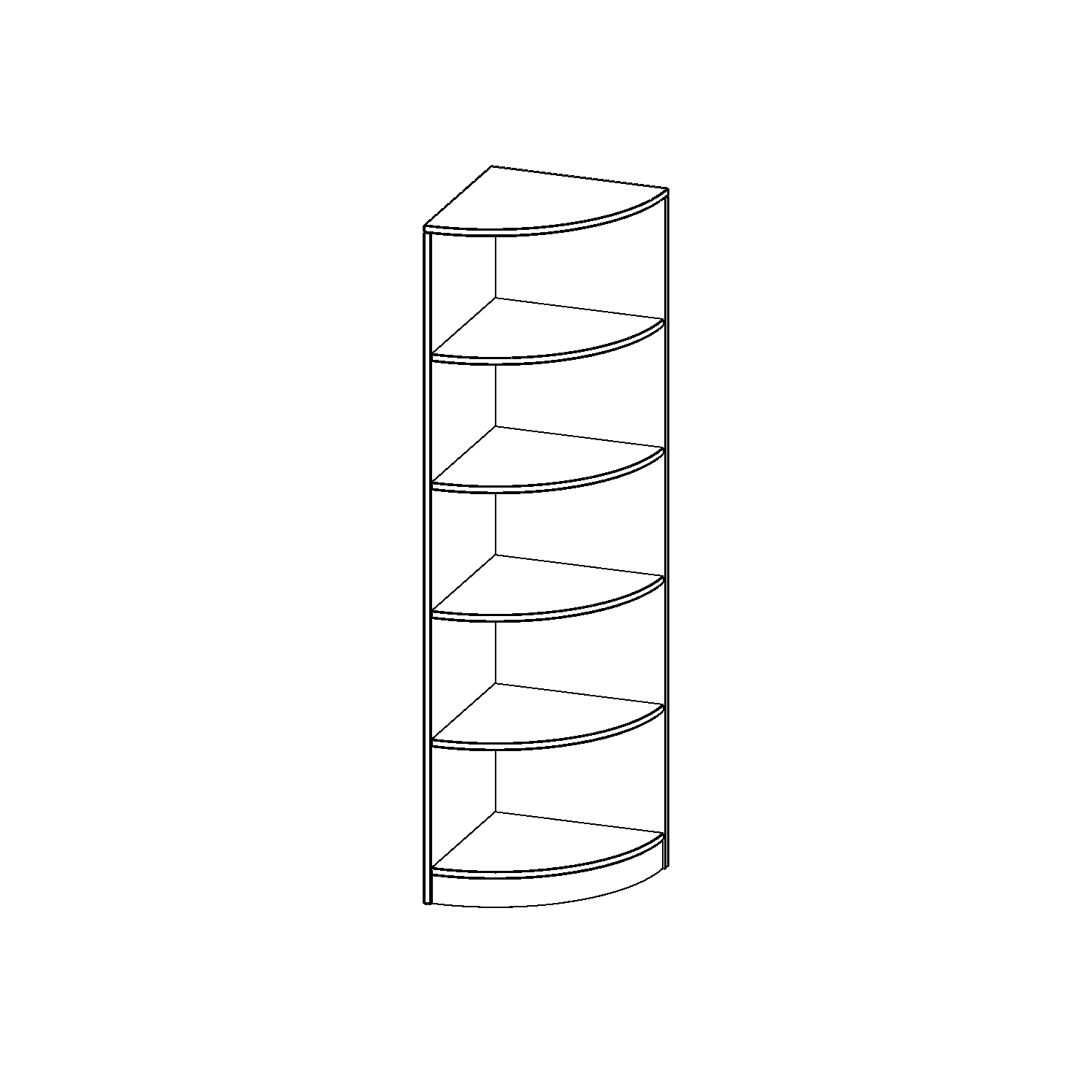 Die evo180 Außeneckregale in Viertelkreisform in verschiedenen Höhen und Tiefen sind ein ganz besonderer Bestandteil unseres evo180 Schrankwandprogrammes. Sie helfen dabei, Ihnen eine Schrankwand im wahrsten Sinne des Wortes "um die Ecke zu bringen". Die Außenecken führen die Schrankwand um nach innen in den Raum hineinragende Ecken fort. Die Rückwand ist als Sichtrückwand ausgeführt.