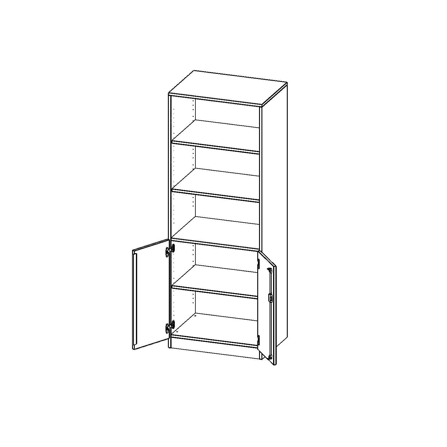 Alle Schränke werden aus melaminharzbeschichteter E1-Feinspanplatte gefertigt, die FSC zertifiziert und formaldehydfrei sind. Als Kanten verwenden wir besonders robuste 2 mm starke ABS Kanten, die unter hoher Temperatur fest verleimt werden. Bitte wählen Sie Ihr Wunschdekor aus unserer Dekorpalette aus. Die Einlegeböden sind im Raster von 32 mm verstellbar. Unsere hochwertigen Bodenträger verfügen über einen "Ausziehstop", so wird verhindert, dass Böden mit Inhalt darauf aus dem Regal oder Schrank rutschen können. Die Türen lassen sich dank 270° öffnender Scharniere an den Korpus anlegen. Sie sind mit einem Schloss verschließbar. An den Türen befindet sich eine Staublippe.