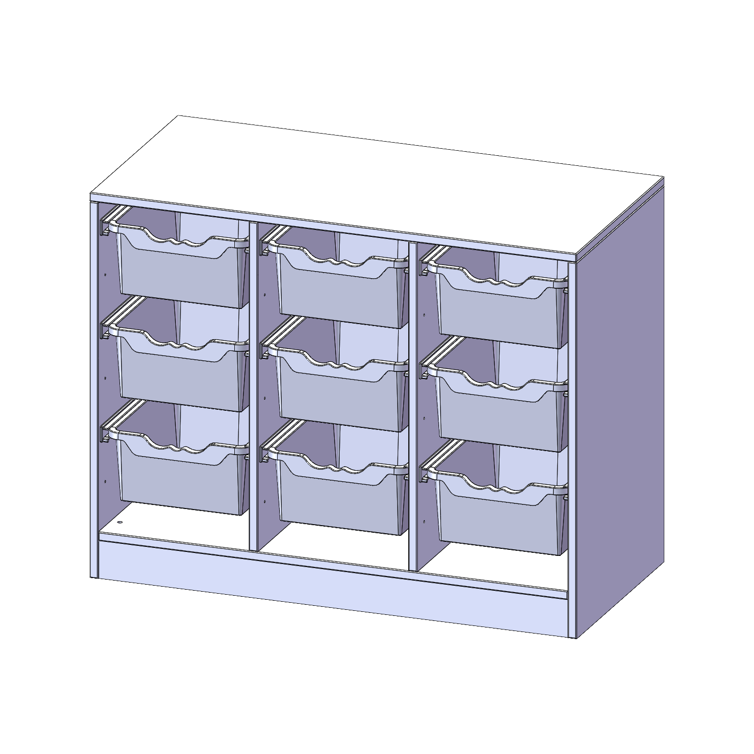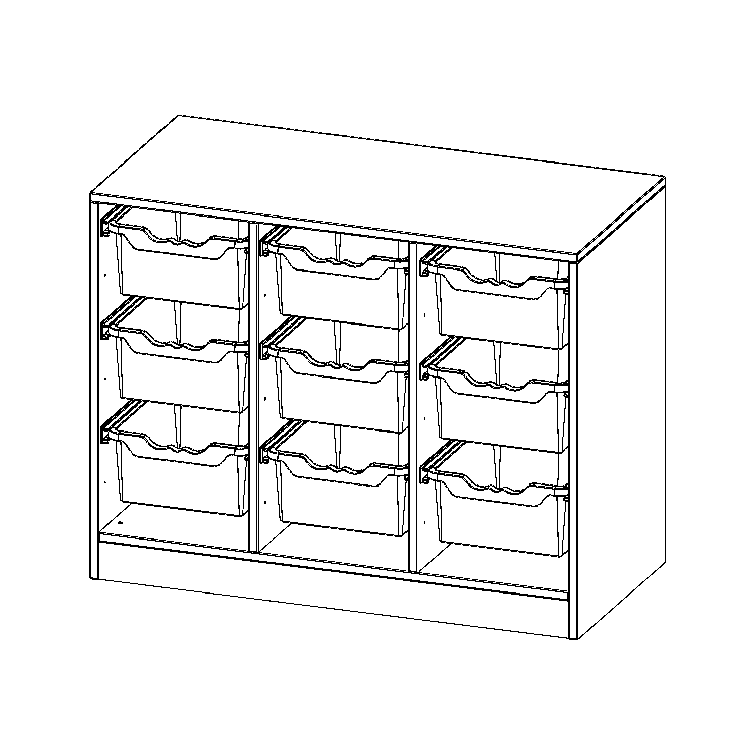 B/H/T: 104,5x82x50 cm, mit Sockel (81 mm), 9 hohe ErgoTray Boxen