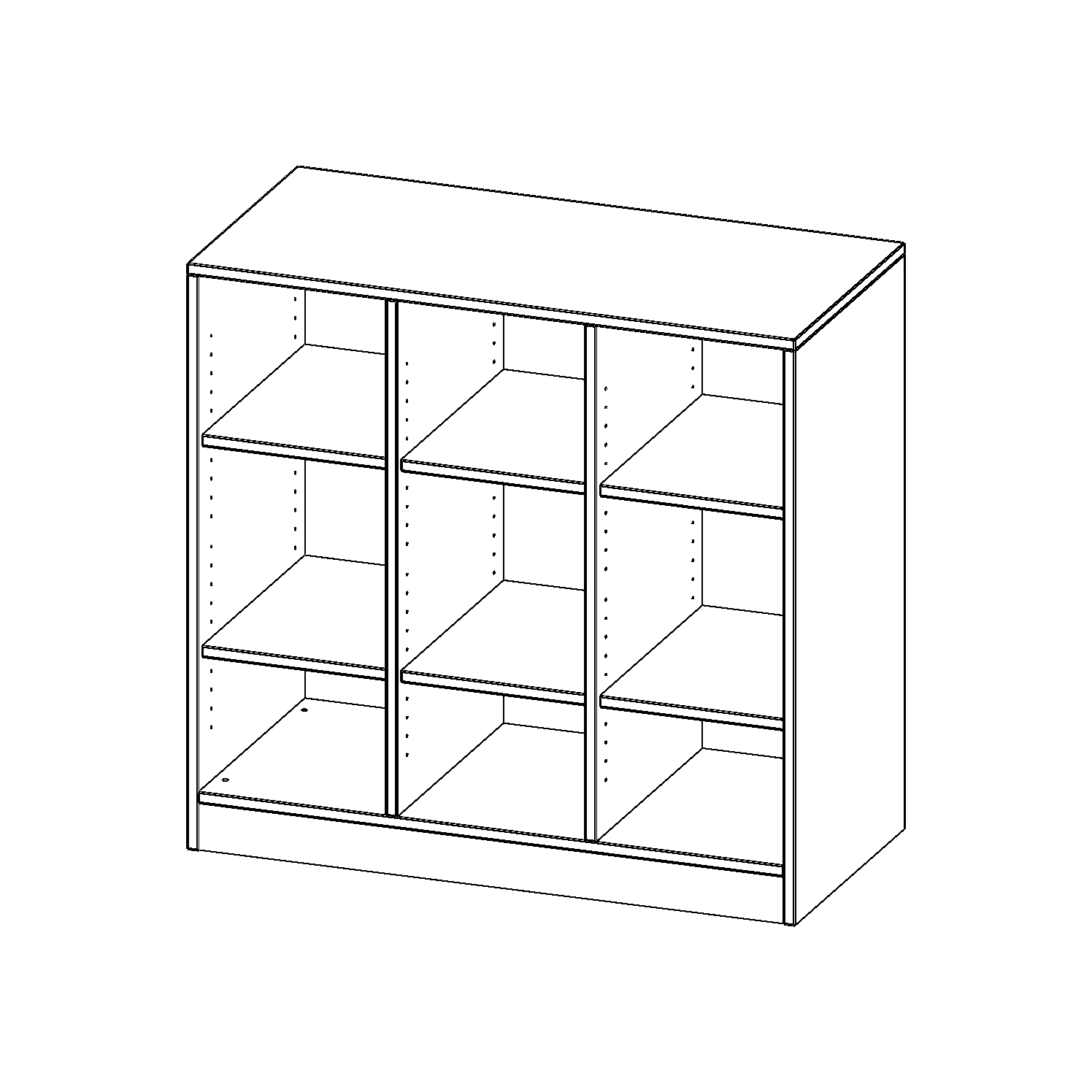 B/H/T: 104,5x100x50 cm (2,5 Ordnerhöhen!), mit Sockel (81 mm) und Mittelwand, ohne Boxen, 6 Einlegeböden