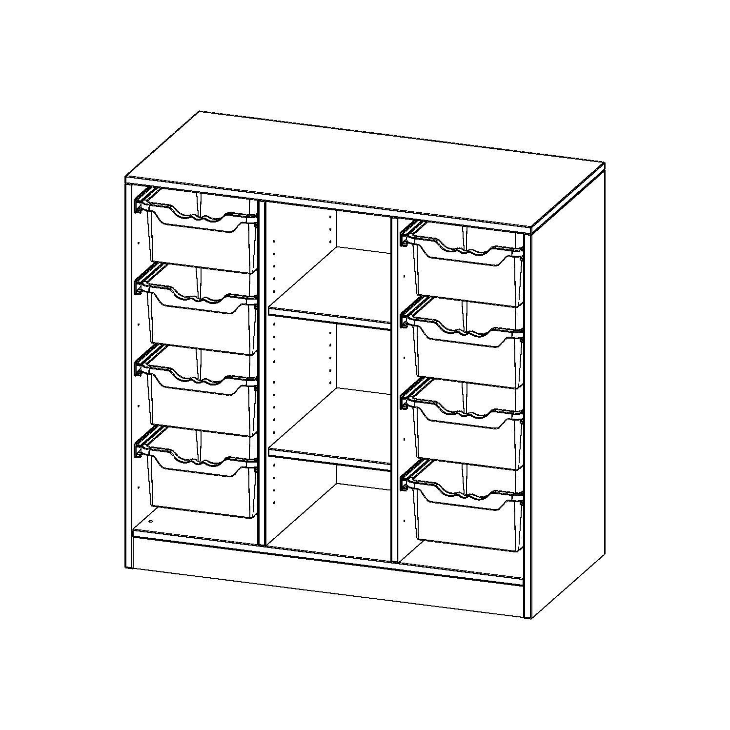 Die Einlegeböden sind im Raster von 32 mm verstellbar. Unsere hochwertigen Bodenträger verfügen über einen "Ausziehstop", so wird verhindert, dass Böden mit Inhalt aus dem Regal oder Schrank rutschen können.