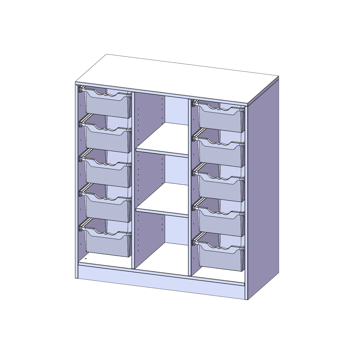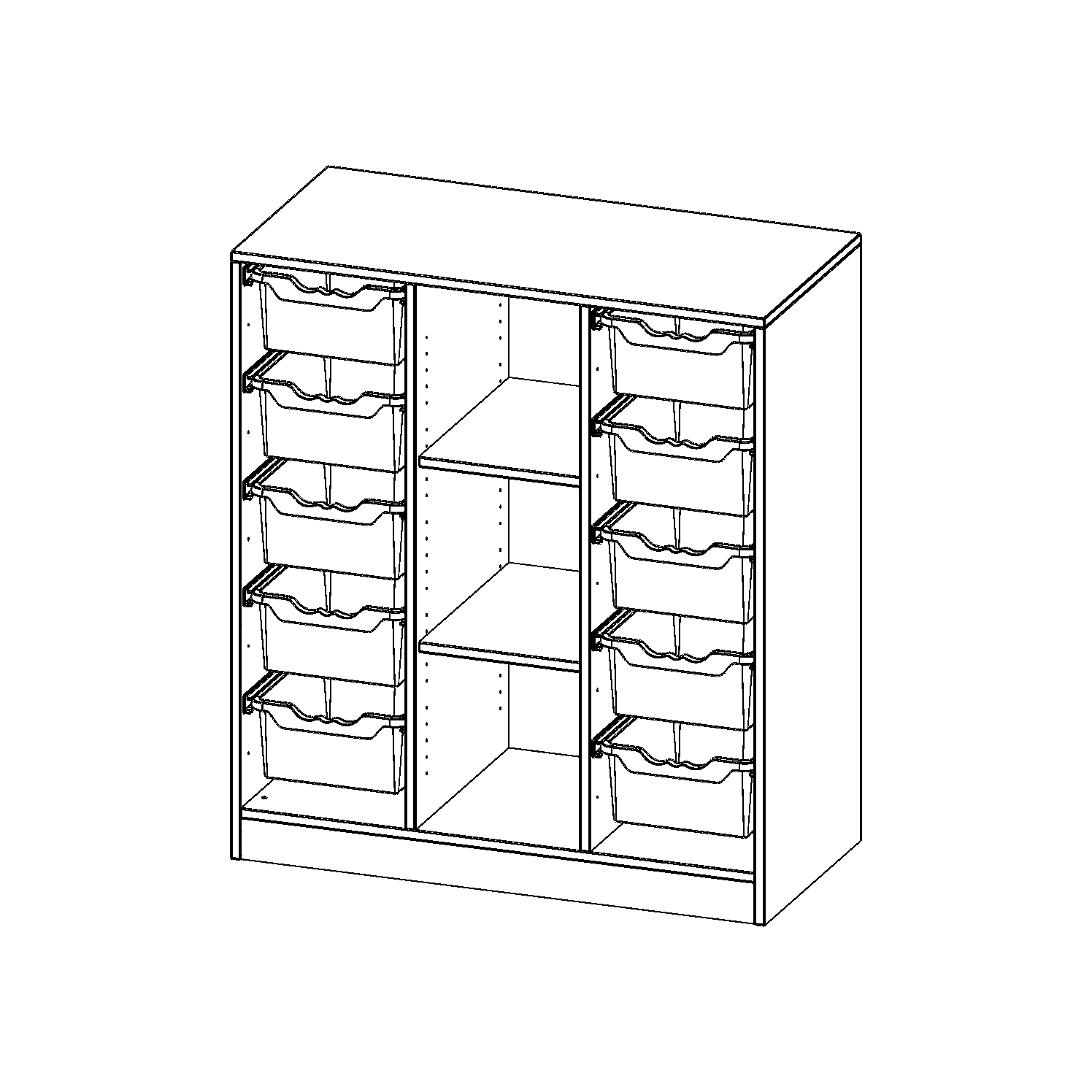 B/H/T: 104,5x118x50 cm, mit Sockel (81 mm), rechts und links je 5 hohe ErgoTray Boxen, 3 Fächer in der Mitte