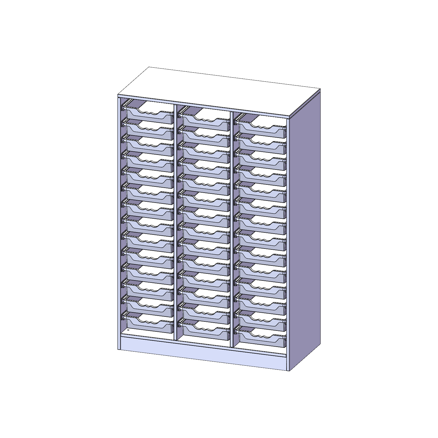 B/H/T: 104,5x154x50 cm, mit Sockel (81 mm), 42 flache ErgoTray Boxen