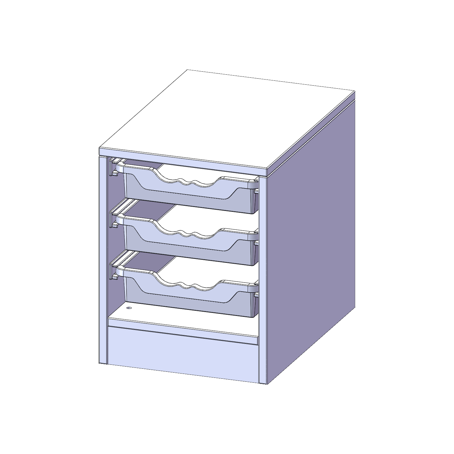 B/H/T: 36,1x46x50 cm, mit Sockel (81 mm), 3 flache ErgoTray Boxen