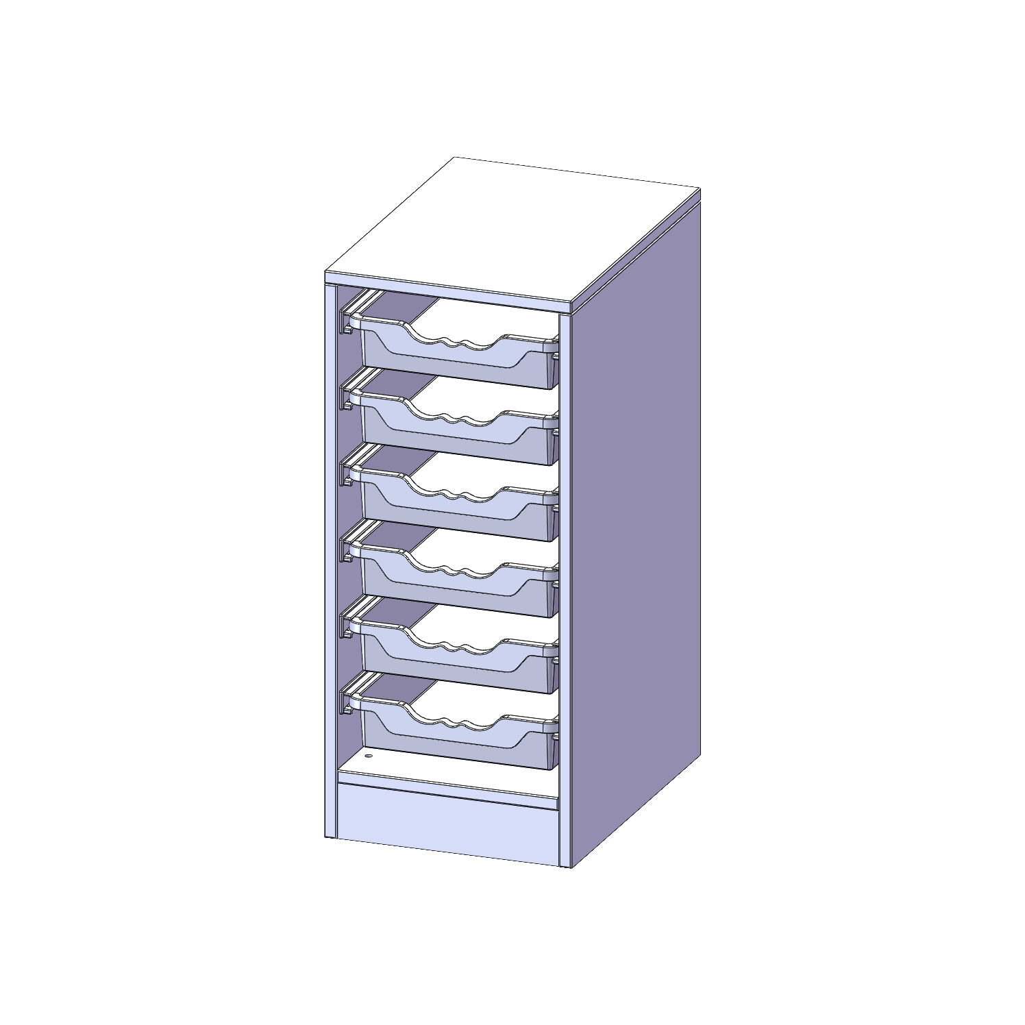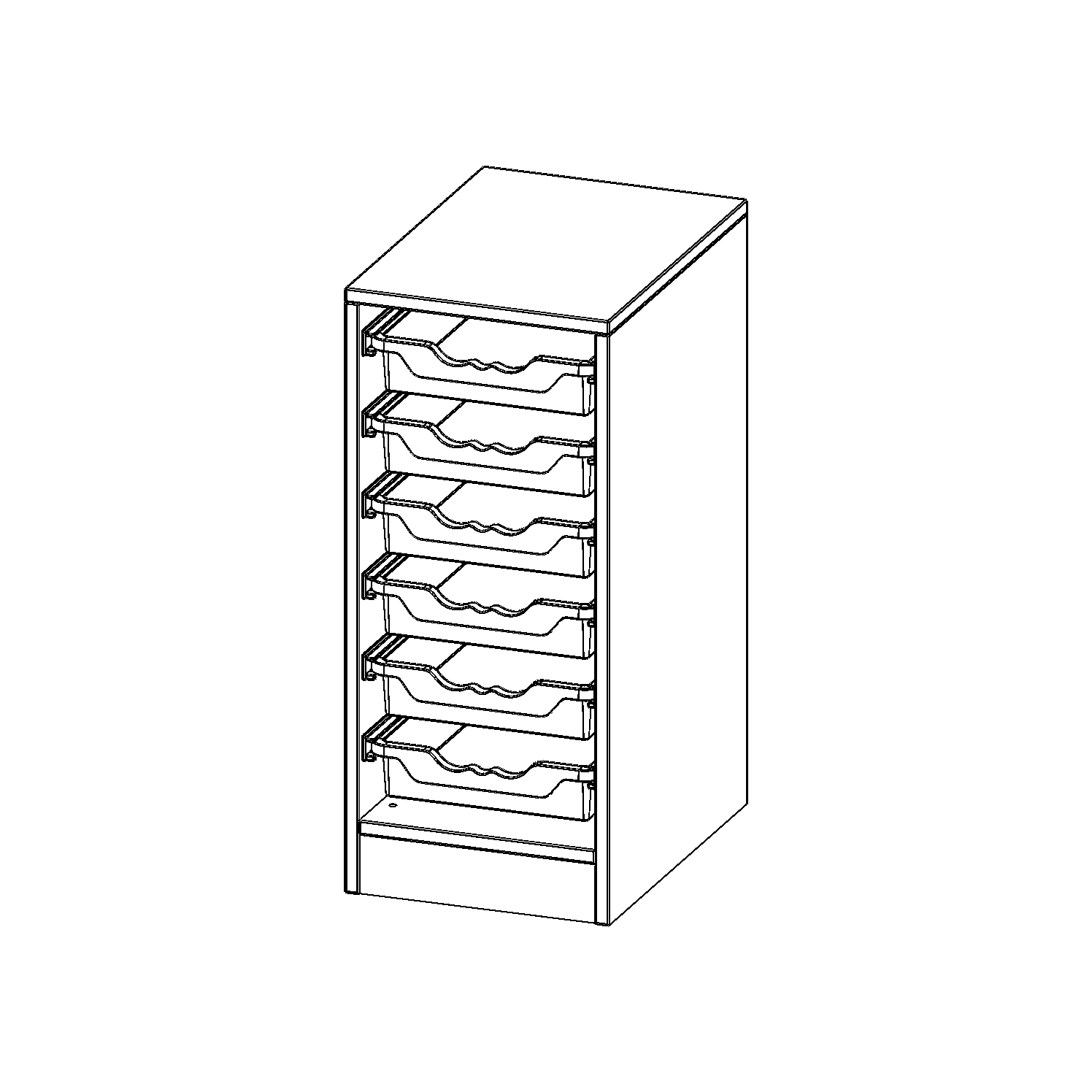 B/H/T: 36,1x82x50 cm, mit Sockel (81 mm), 6 flache ErgoTray Boxen