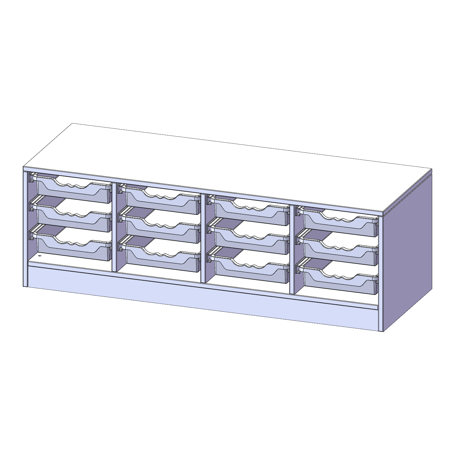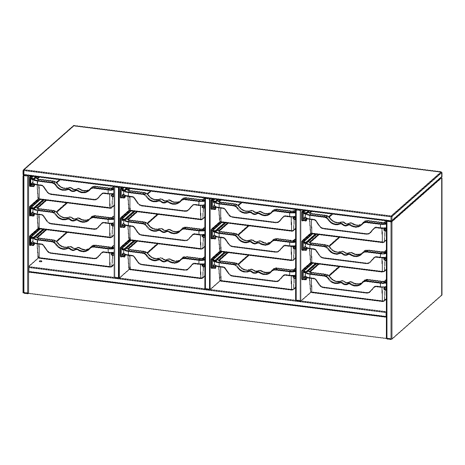 B/H/T: 138,7x46x50 cm, mit Sockel (81 mm), 12 flache ErgoTray Boxen
