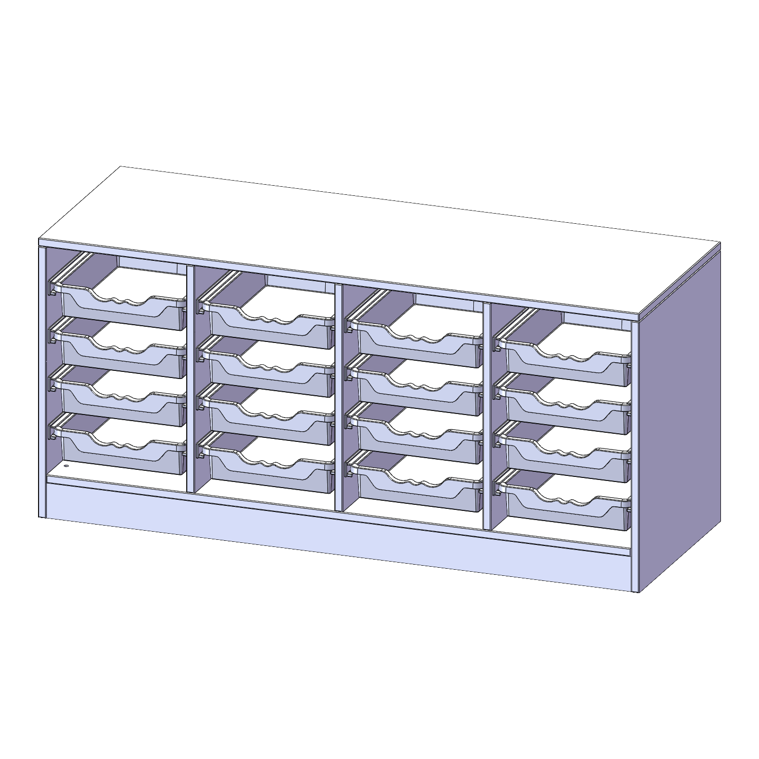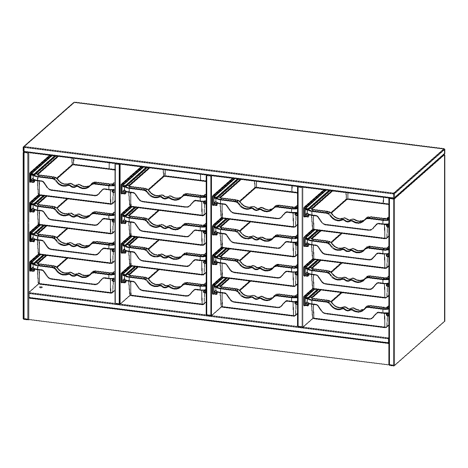 B/H/T: 138,7x64x50 cm, mit Sockel (81 mm), 16 flache ErgoTray Boxen