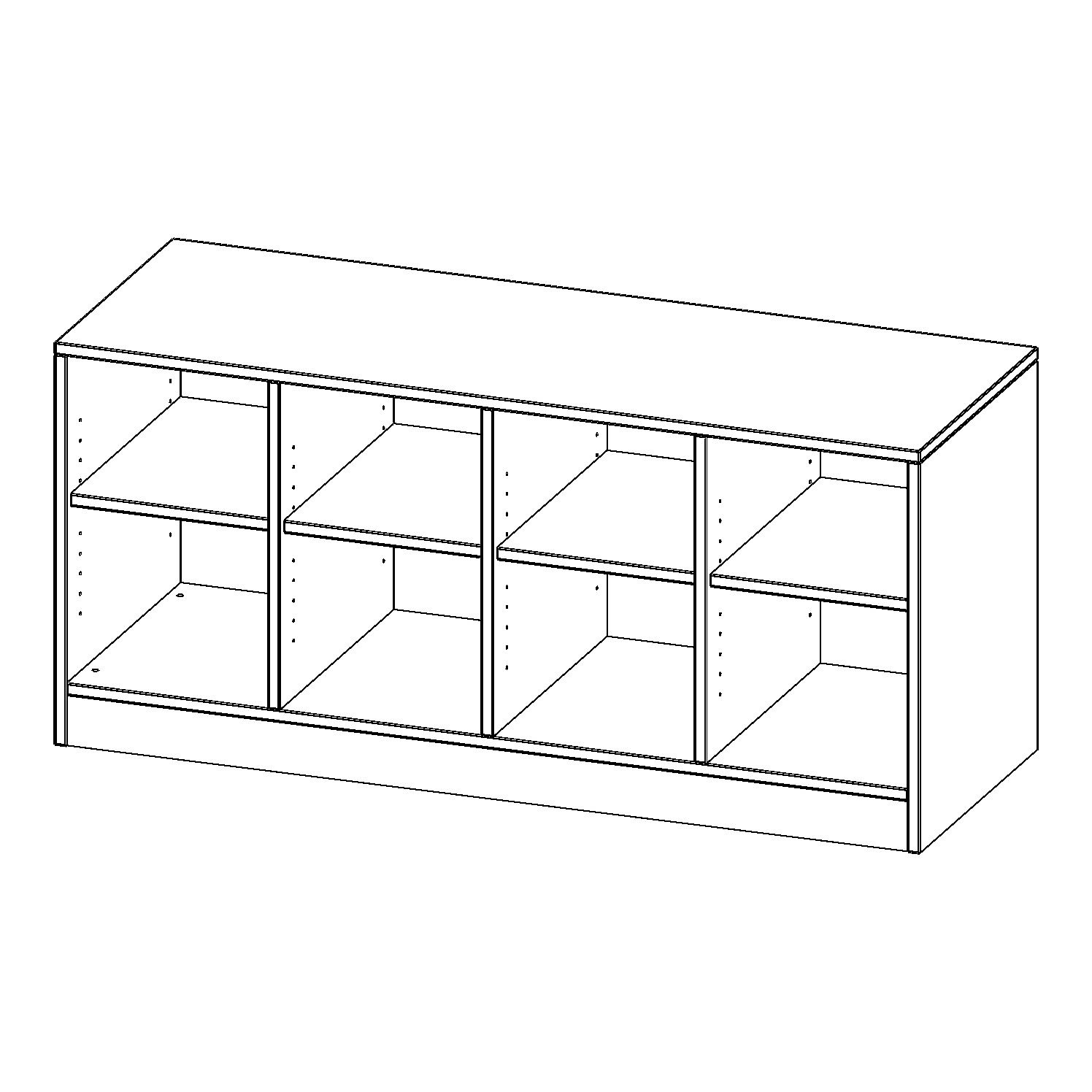Die evo180 Regale und Schränke in verschiedenen Höhen und Breiten sind ein Kernstück unseres evo180 Schrankwandprogrammes. Die Rückwand ist als Sichtrückwand ausgeführt, dementsprechend eignen sich alle evo180 Einzelregale oder Regalwände auch als Raumteiler. Der Sockel hat eine Höhe von 81 mm und ist an der Unterseite mit bodenschonenden Kunststoffgleitern ausgestattet.
