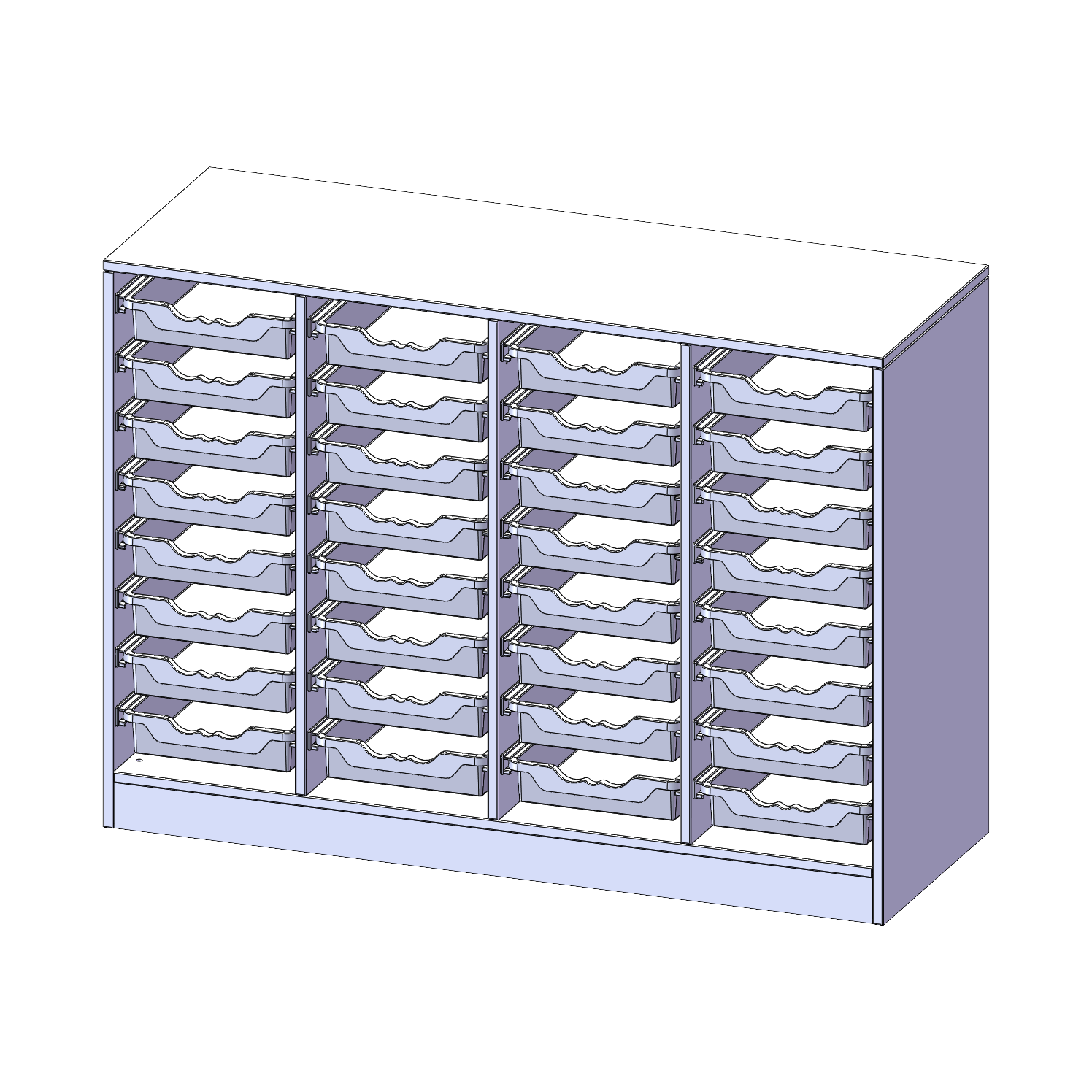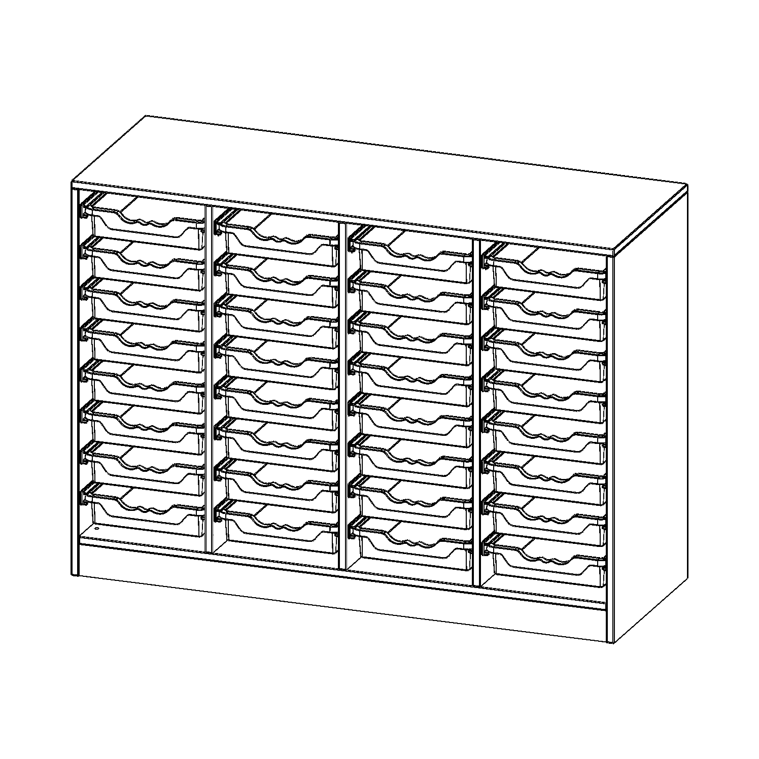 B/H/T: 138,7x100x50 cm, mit Sockel (81 mm), 32 flache ErgoTray Boxen