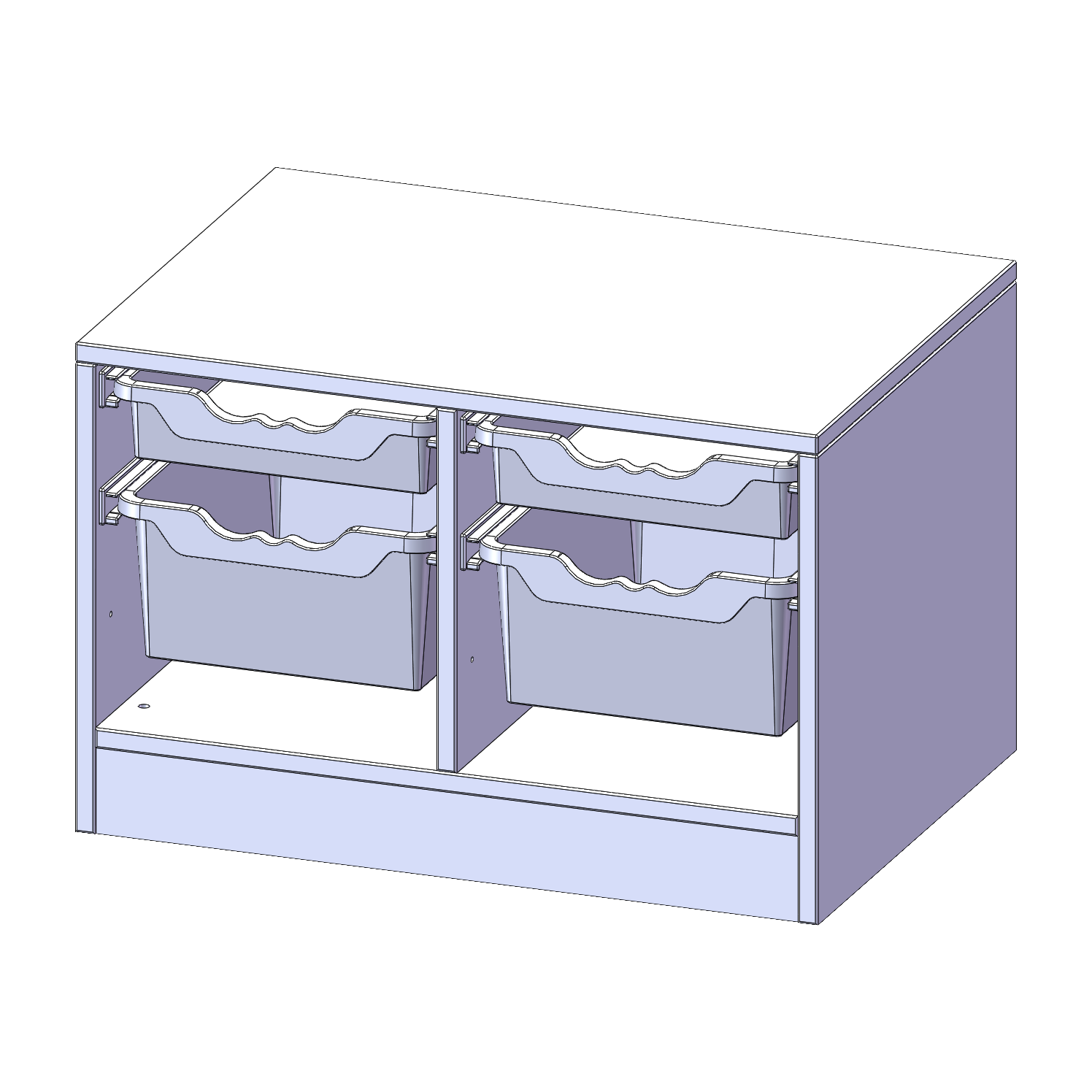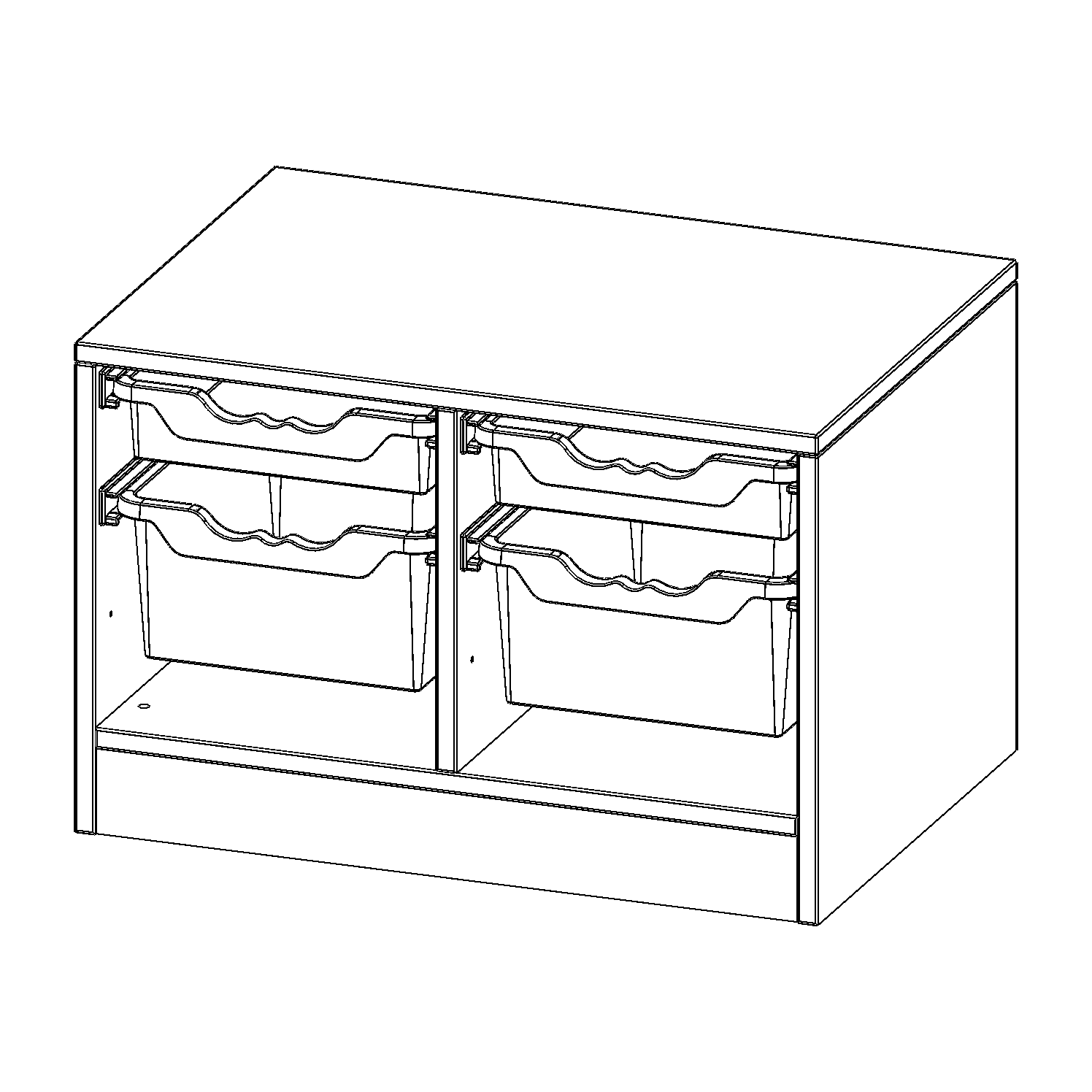 B/H/T: 70,3x46x50 cm, mit Sockel (81 mm), 2 flache und 2 hohe ErgoTray Boxen