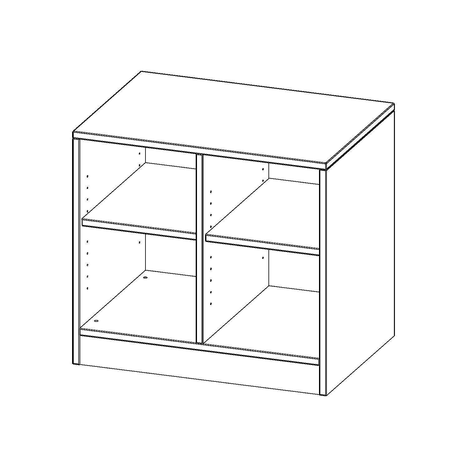 B/H/T: 70,3x64x50 cm (1,5 Ordnerhöhen!), mit Sockel (81 mm) und Mittelwand, ohne Boxen, 2 Einlegeböden
