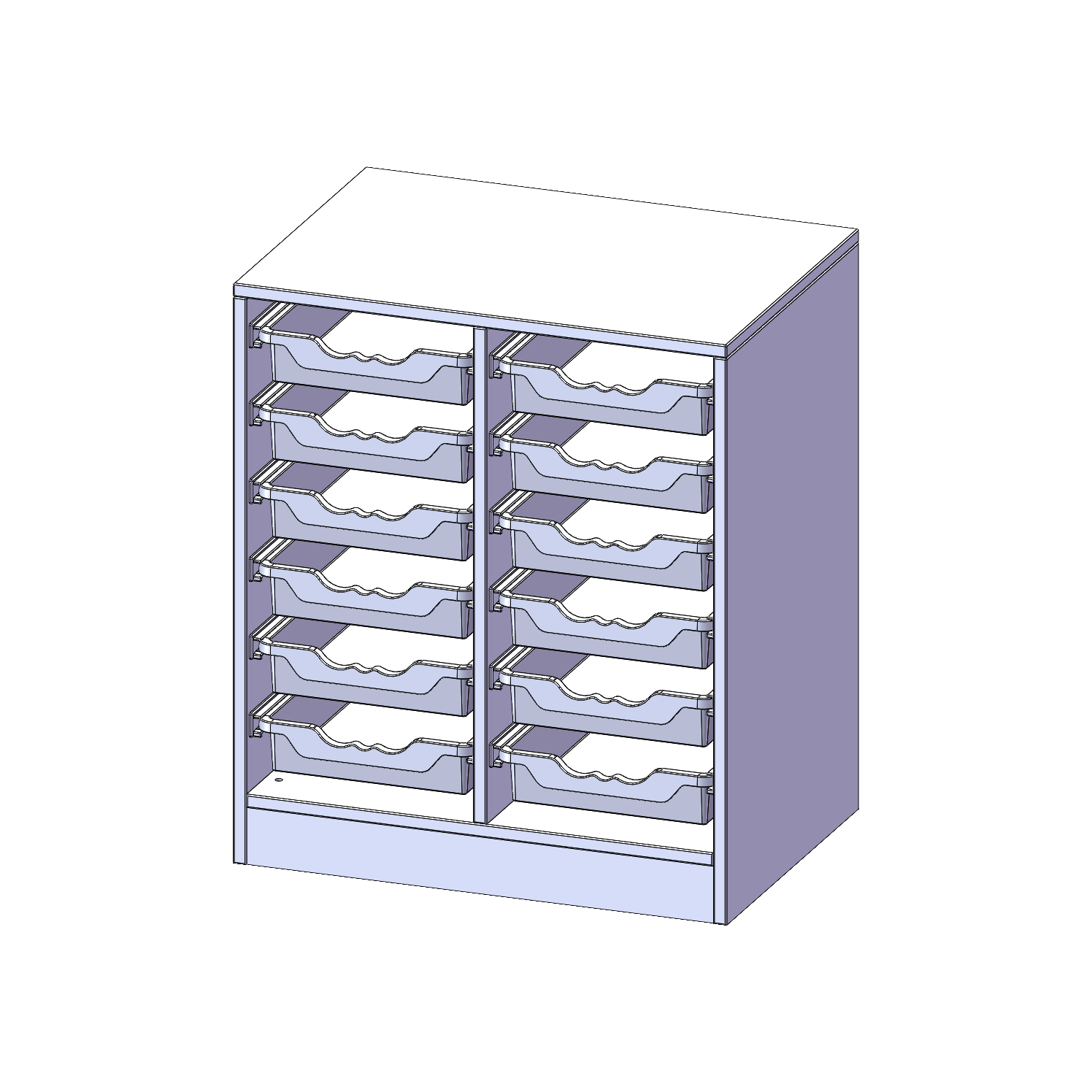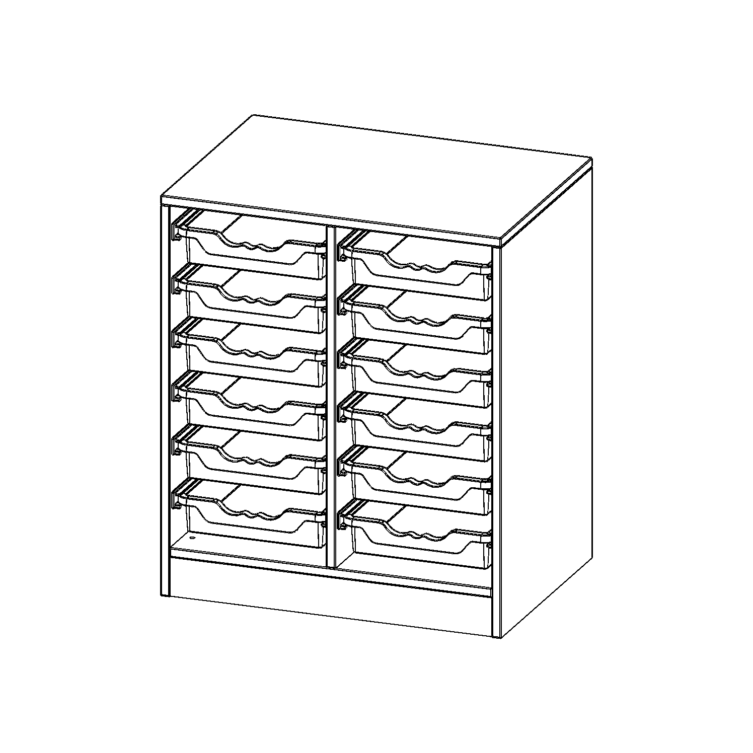 B/H/T: 70,3x82x50 cm, mit Sockel (81 mm), 12 flache ErgoTray Boxen