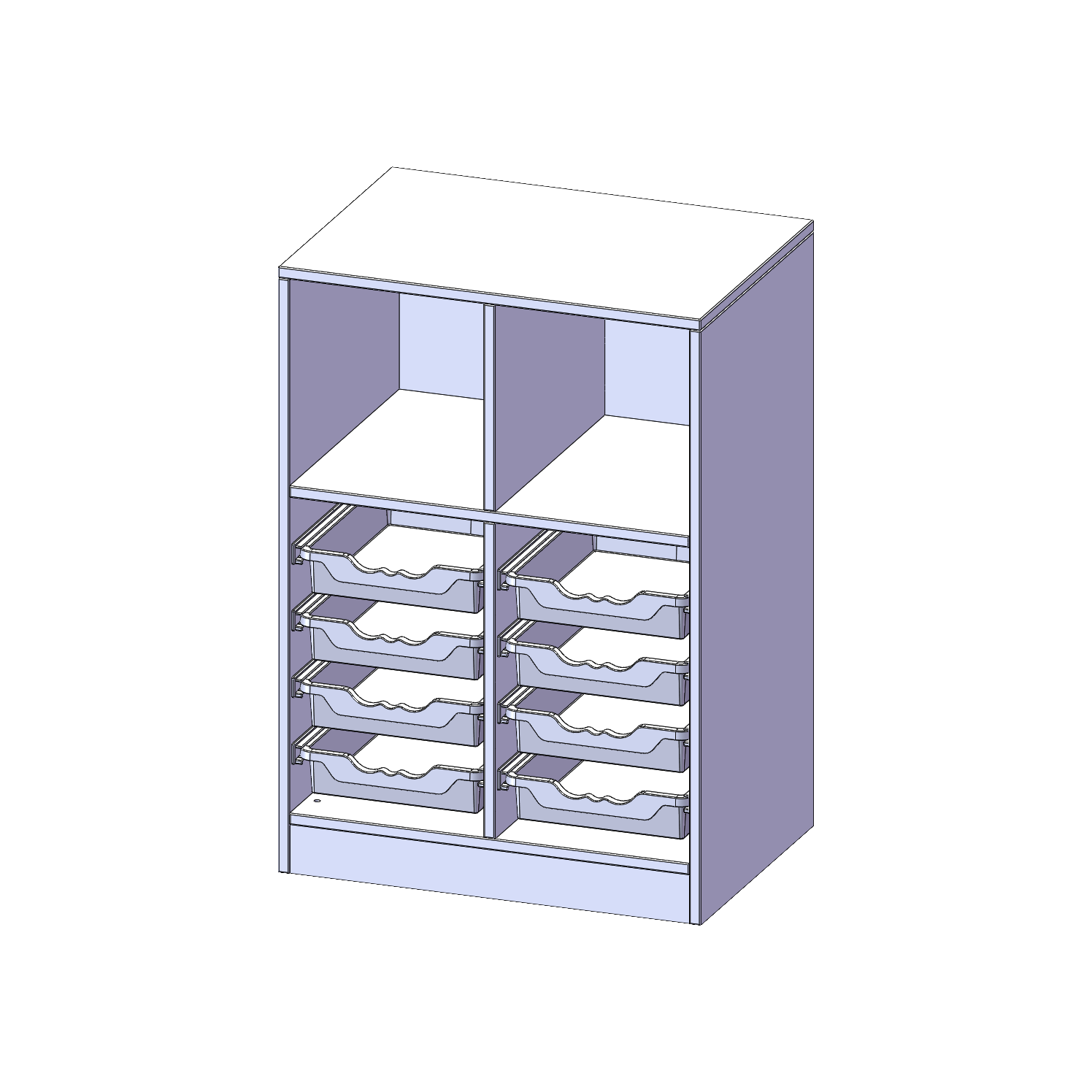 B/H/T: 70,3x100x50 cm, mit Sockel (81 mm), oben 3 Fächer, unten 8 flache ErgoTray Boxen
