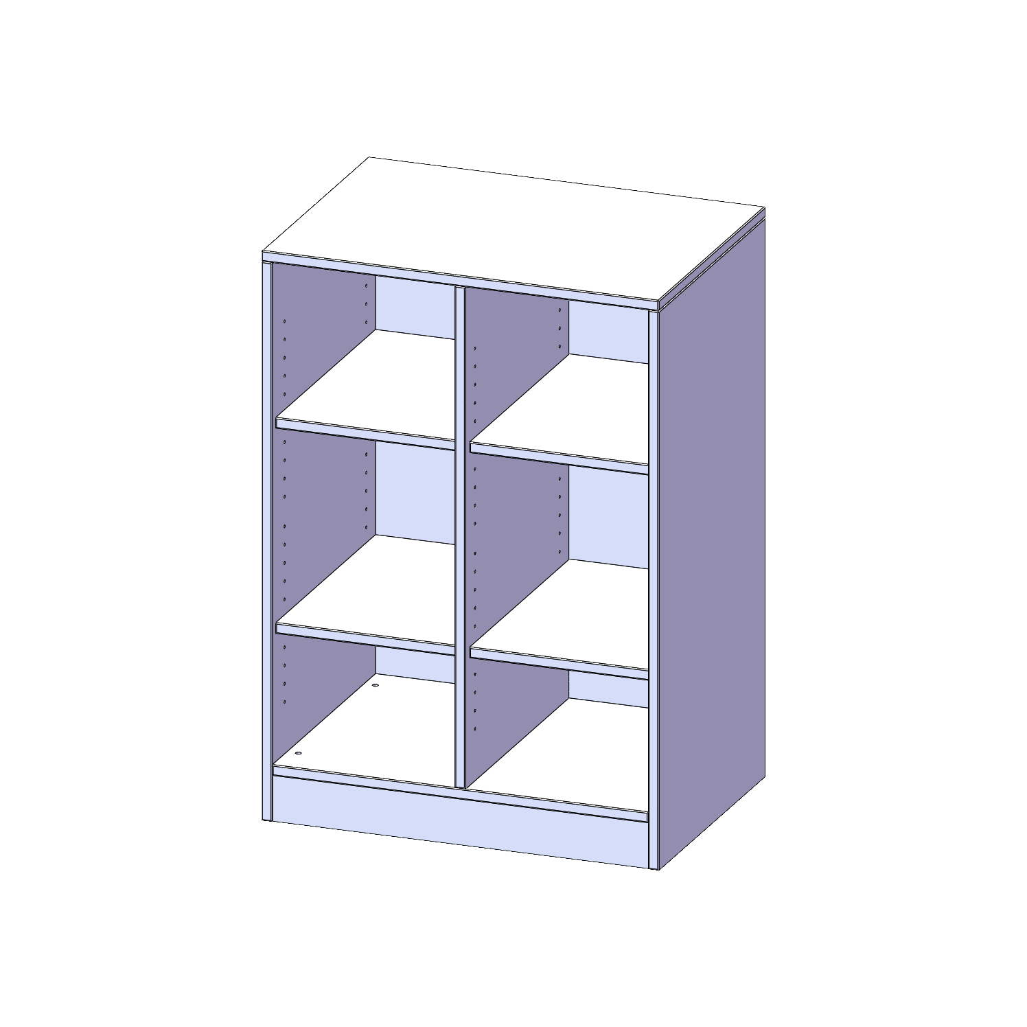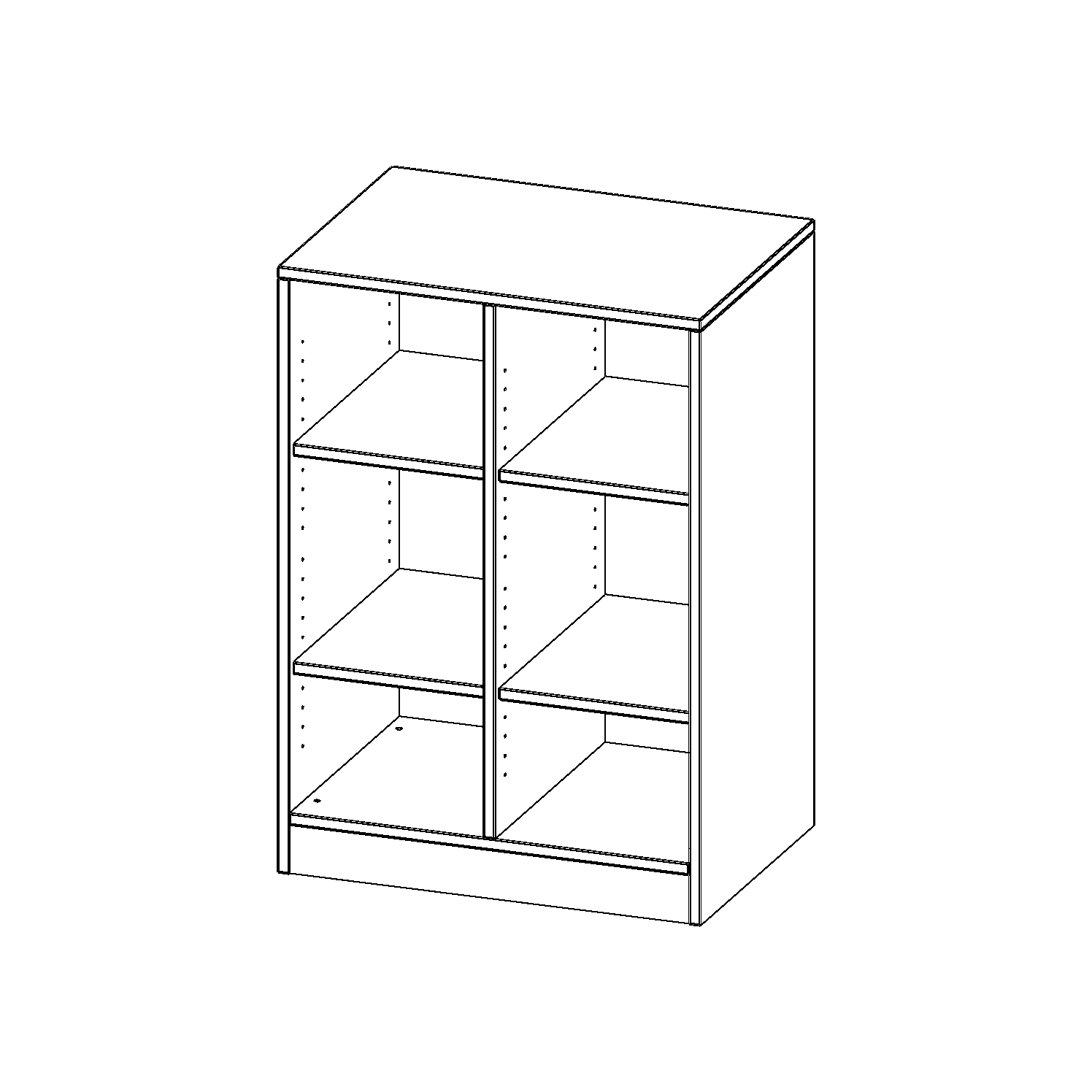 B/H/T: 70,3x100x50 cm (2,5 Ordnerhöhen), mit Sockel (81 mm) und Mittelwand, ohne Boxen, 4 Einlegeböden