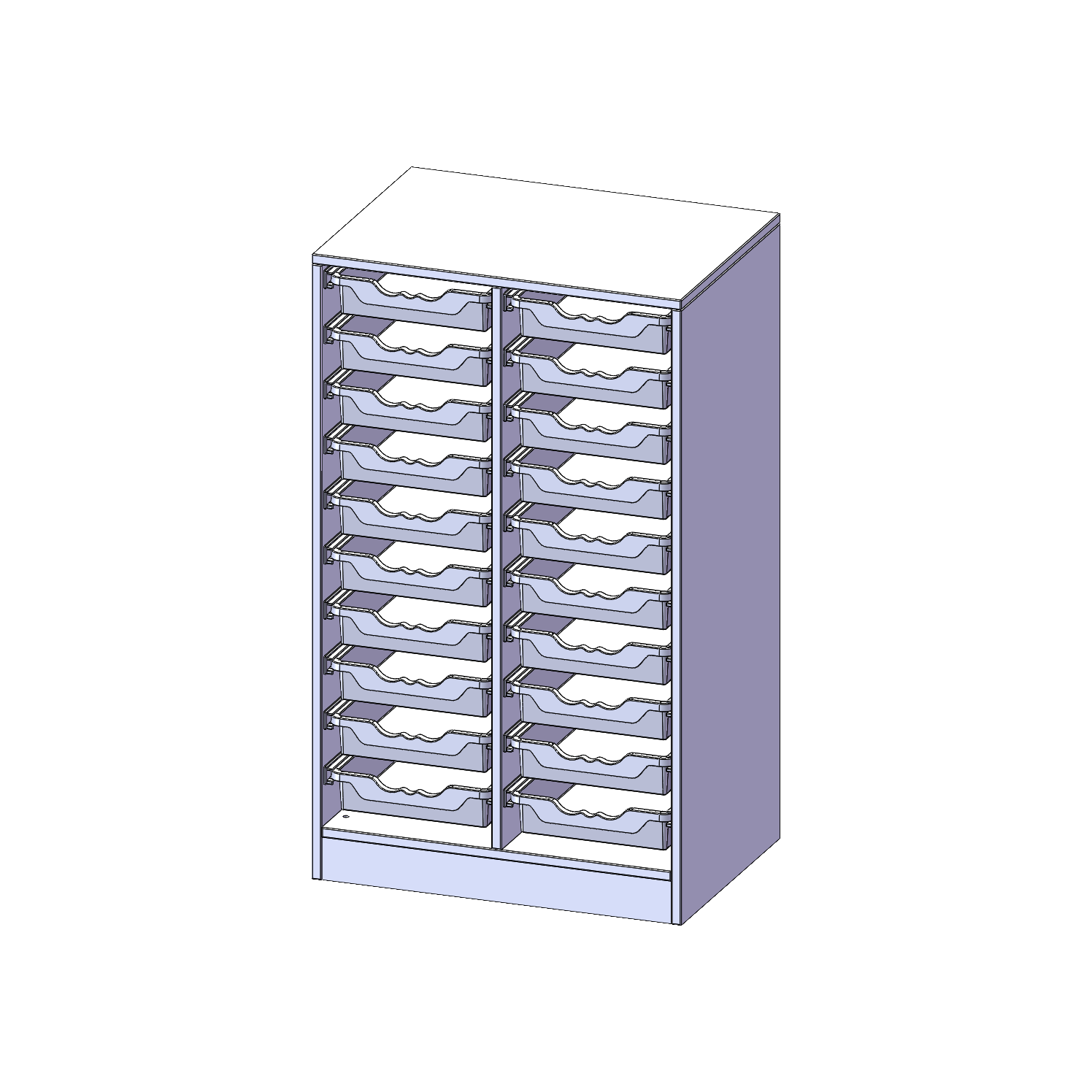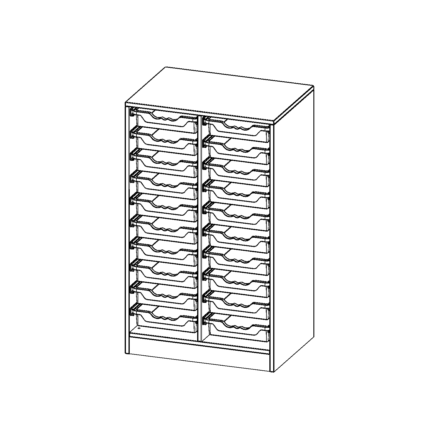 B/H/T: 70,3x118x50 cm, mit Sockel (81 mm), 20 flache ErgoTray Boxen