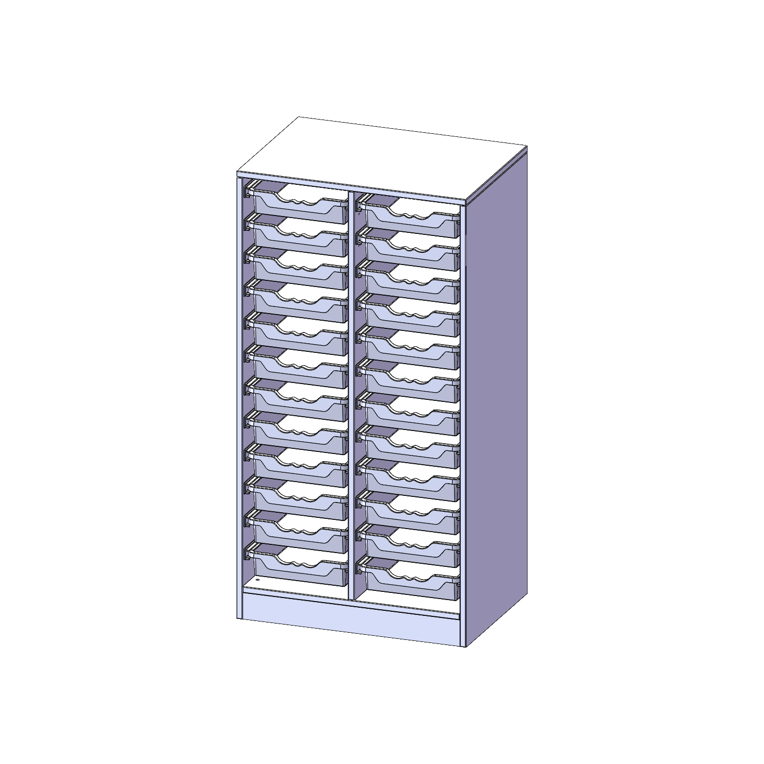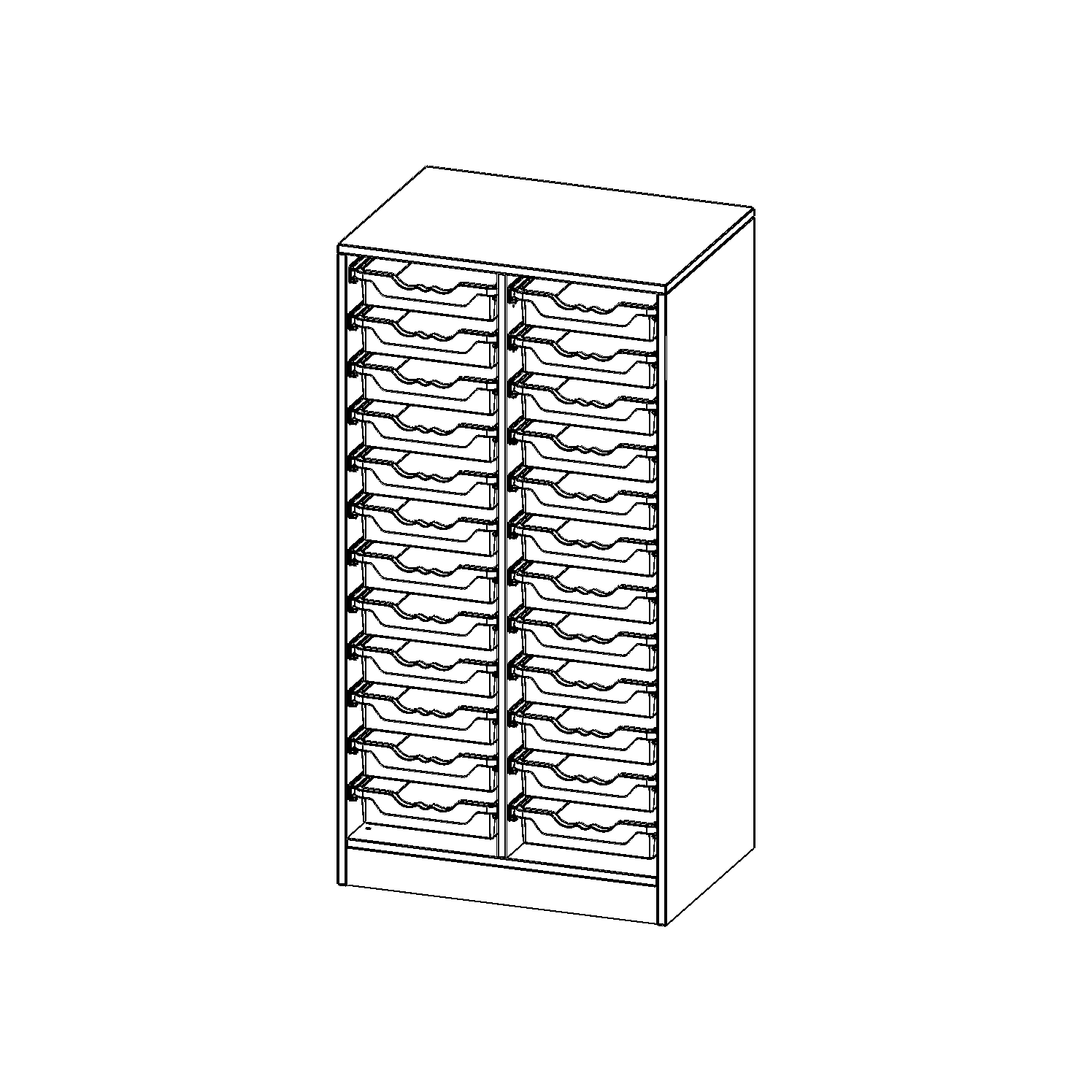 B/H/T: 70,3x136x50 cm, mit Sockel (81 mm), 24 flache ErgoTray Boxen