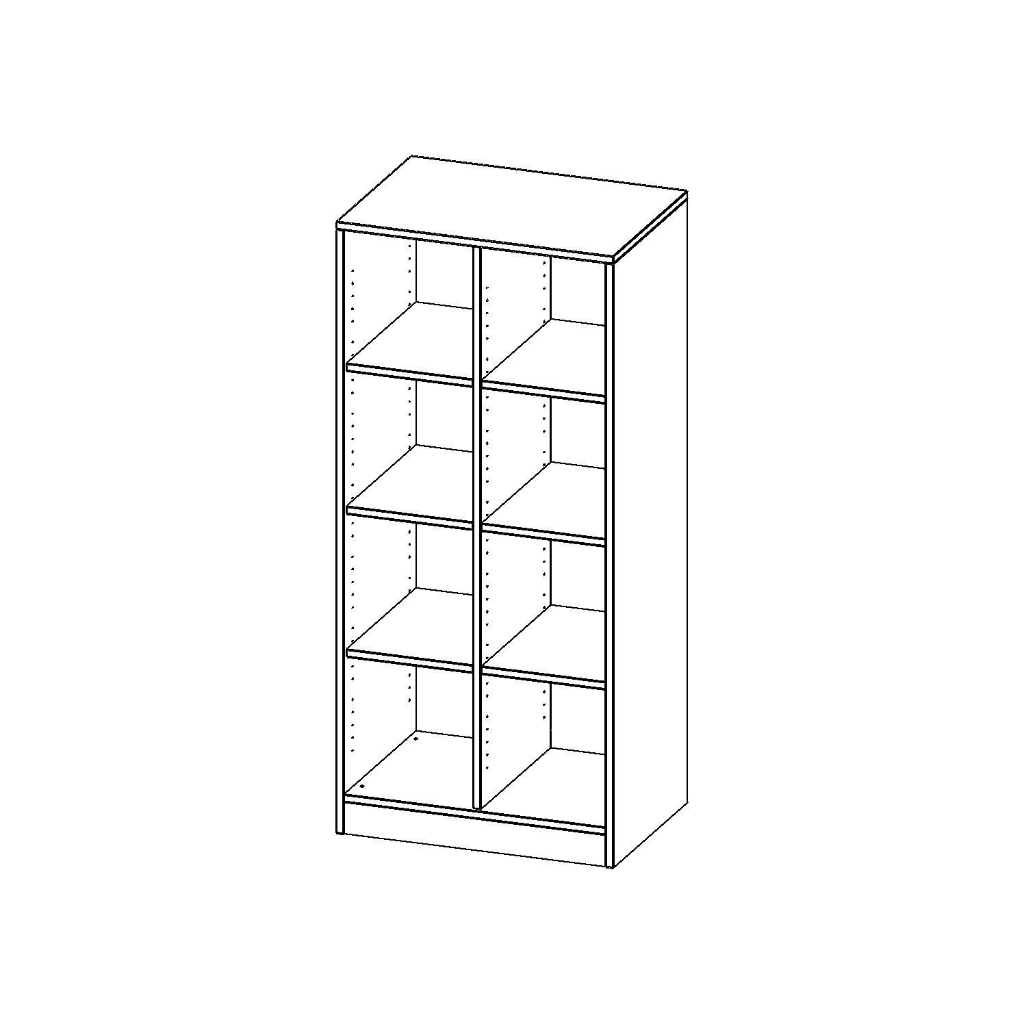 Die evo180 Regale und Schränke in verschiedenen Höhen und Breiten sind ein Kernstück unseres evo180 Schrankwandprogrammes. Die Rückwand ist als Sichtrückwand ausgeführt, dementsprechend eignen sich alle evo180 Einzelregale oder Regalwände auch als Raumteiler. Der Sockel hat eine Höhe von 81 mm und ist an der Unterseite mit bodenschonenden Kunststoffgleitern ausgestattet.
