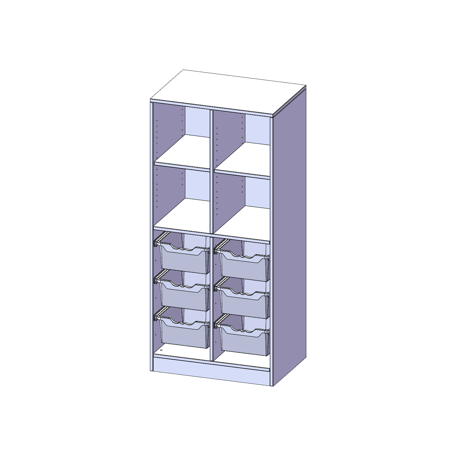 B/H/T: 70,3x154x50 cm, mit Sockel (81 mm), oben 4 Fächer, unten 6 hohe ErgoTray Boxen