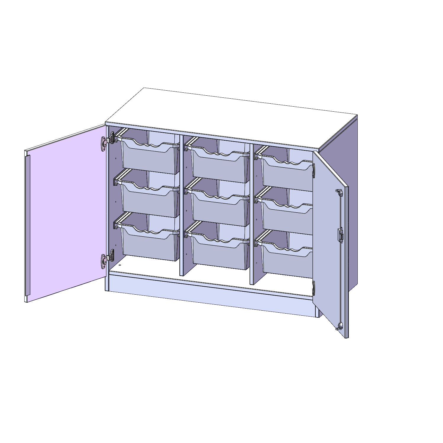 B/H/T: 104,5x82x50 cm, zweitürig, mit Sockel (81 mm), mit 9 hohen ErgoTray Boxen