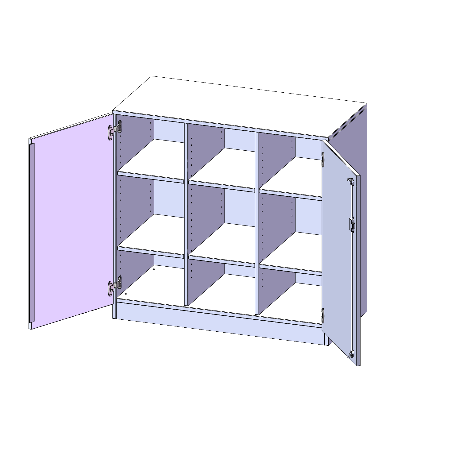 Alle Schränke werden aus melaminharzbeschichteter E1-Feinspanplatte gefertigt, welche FSC zertifiziert und formaldehydfrei sind. Als Kanten verwenden wir besonders robuste 2 mm starke ABS Kanten, die unter hoher Temperatur fest verleimt werden. Bitte wählen Sie Ihr Wunschdekor aus unserer Dekorpalette aus. Die Einlegeböden sind im Raster von 32 mm verstellbar. Unsere hochwertigen Bodenträger verfügen über einen "Ausziehstop", so wird verhindert, dass Böden mit Inhalt aus dem Regal oder Schrank rutschen können. Die Türen lassen sich dank 270° öffnender Scharniere an den Korpus anlegen. Sie sind mit einem Schloss verschließbar. An den Türen befindet sich eine Staublippe.