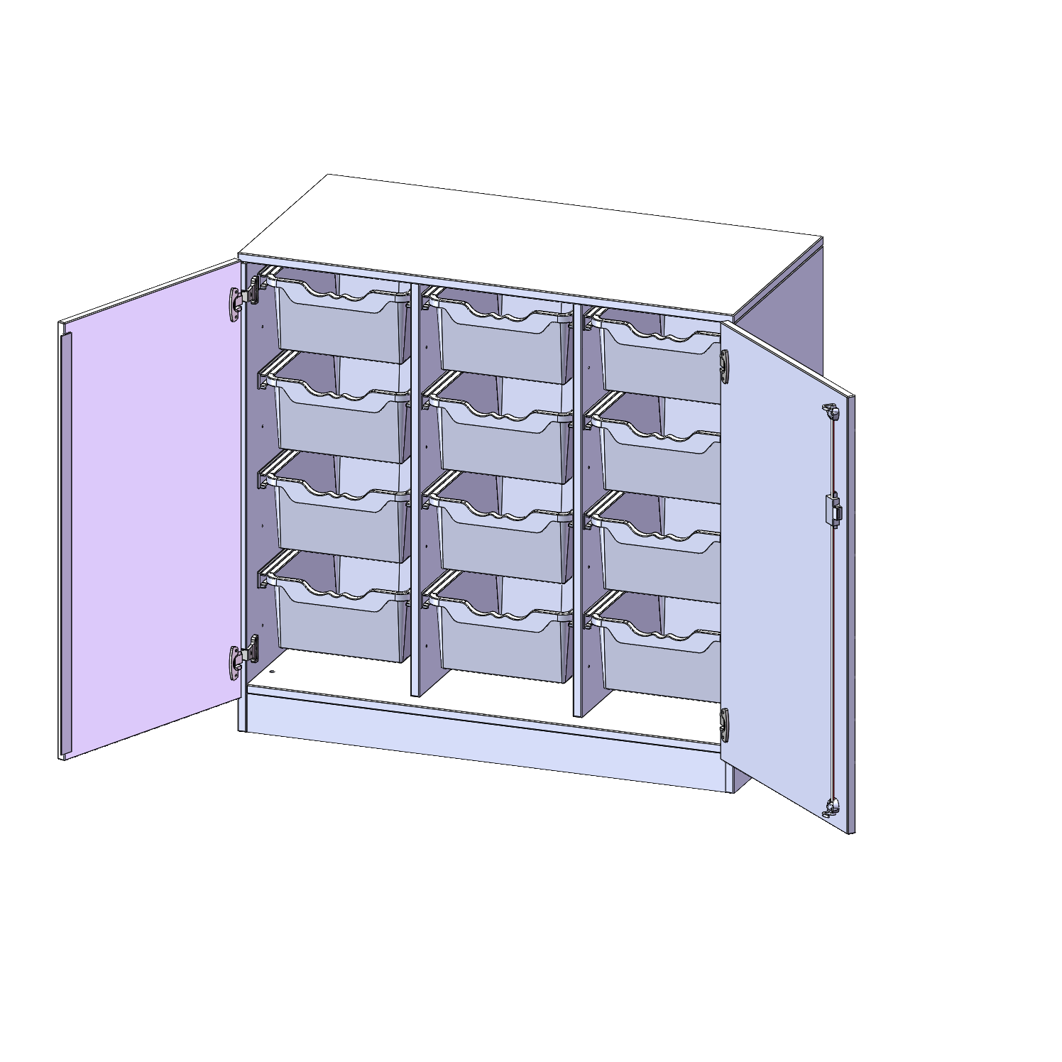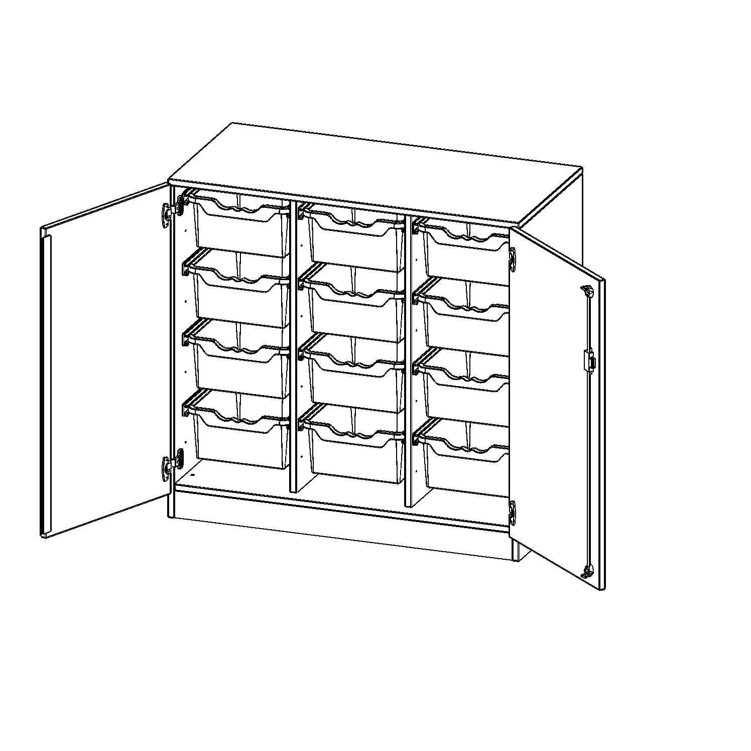 B/H/T: 104,5x100x50 cm, zweitürig, mit Sockel (81 mm), mit 12 hohen ErgoTray Boxen