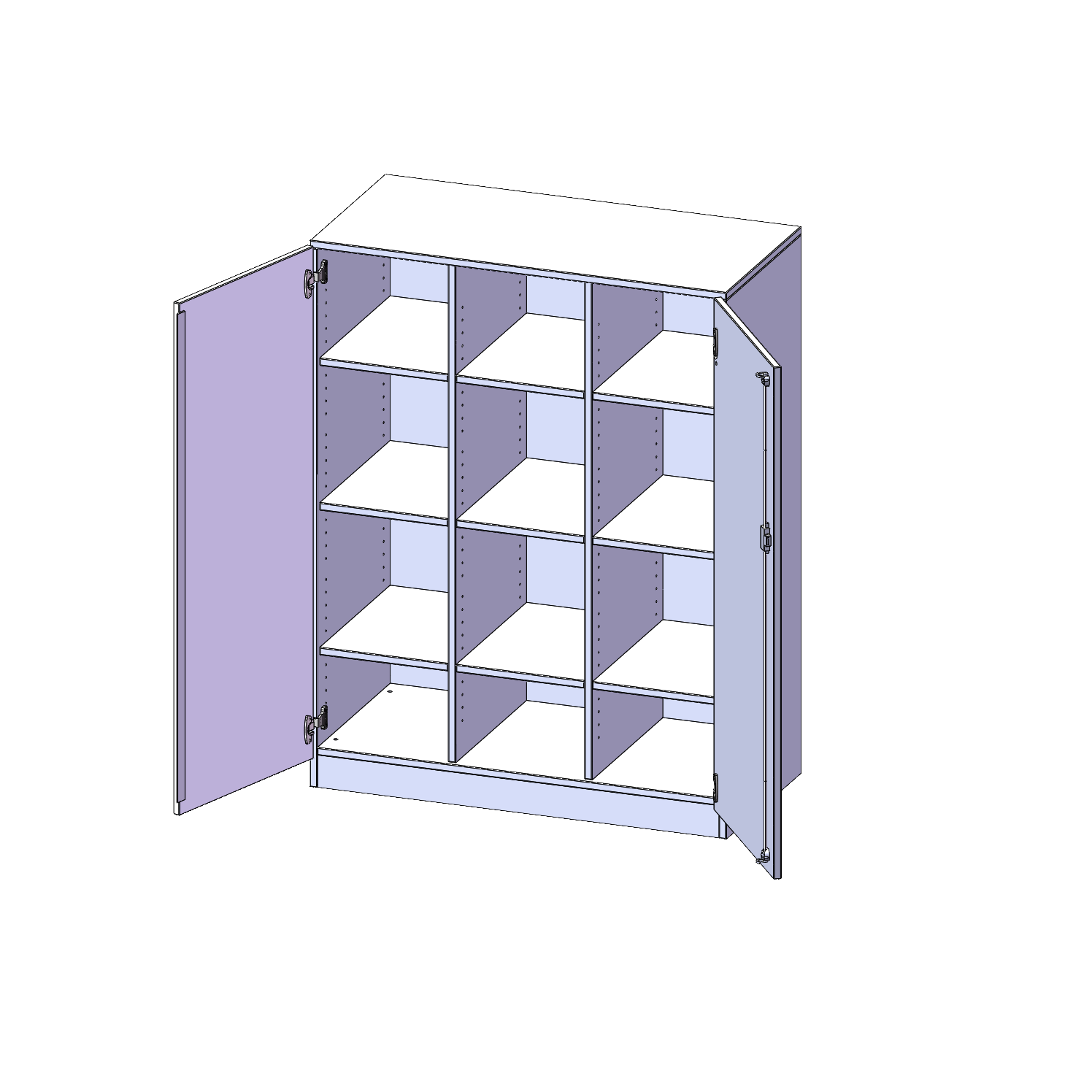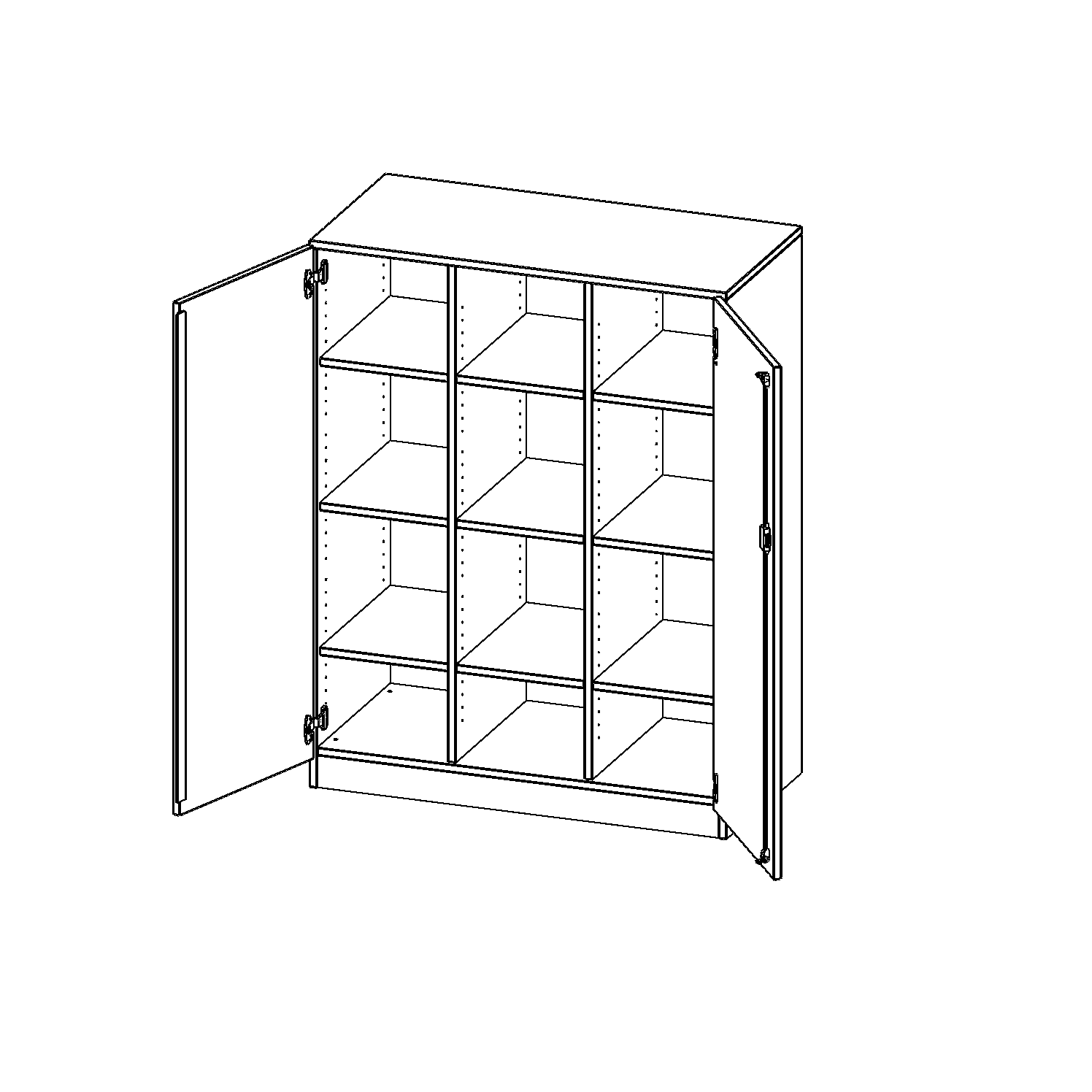 Alle Schränke werden aus melaminharzbeschichteter E1-Feinspanplatte gefertigt, die FSC zertifiziert und formaldehydfrei sind. Als Kanten verwenden wir besonders robuste 2 mm starke ABS Kanten, die unter hoher Temperatur fest verleimt werden. Bitte wählen Sie Ihr Wunschdekor aus unserer Dekorpalette aus. Die Einlegeböden sind im Raster von 32 mm verstellbar. Unsere hochwertigen Bodenträger verfügen über einen "Ausziehstop", so wird verhindert, dass Böden mit Inhalt darauf aus dem Regal oder Schrank rutschen können. Die Türen lassen sich dank 270° öffnender Scharniere an den Korpus anlegen. Sie sind mit einem Schloss verschließbar. An den Türen befindet sich eine Staublippe.
