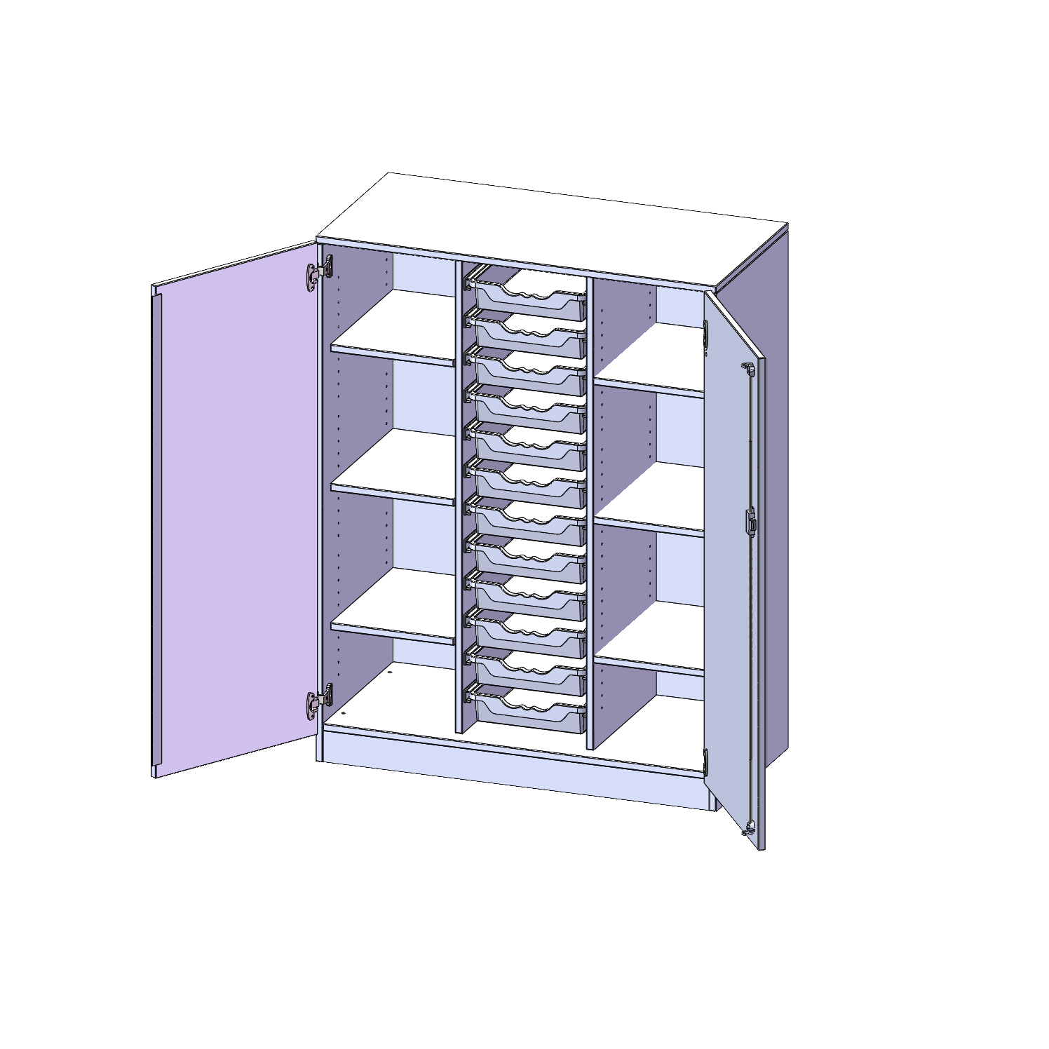 B/H/T: 104,5x136x50 cm, zweitürig, mit Sockel (81 mm), mit 12 flachen ErgoTray Boxen