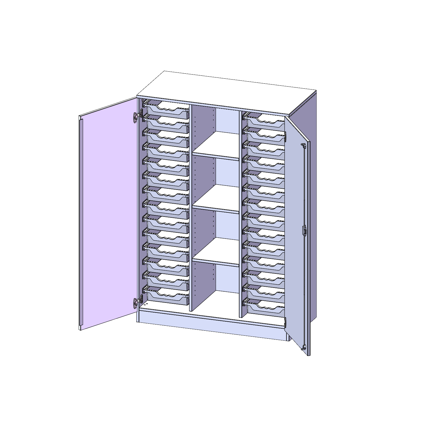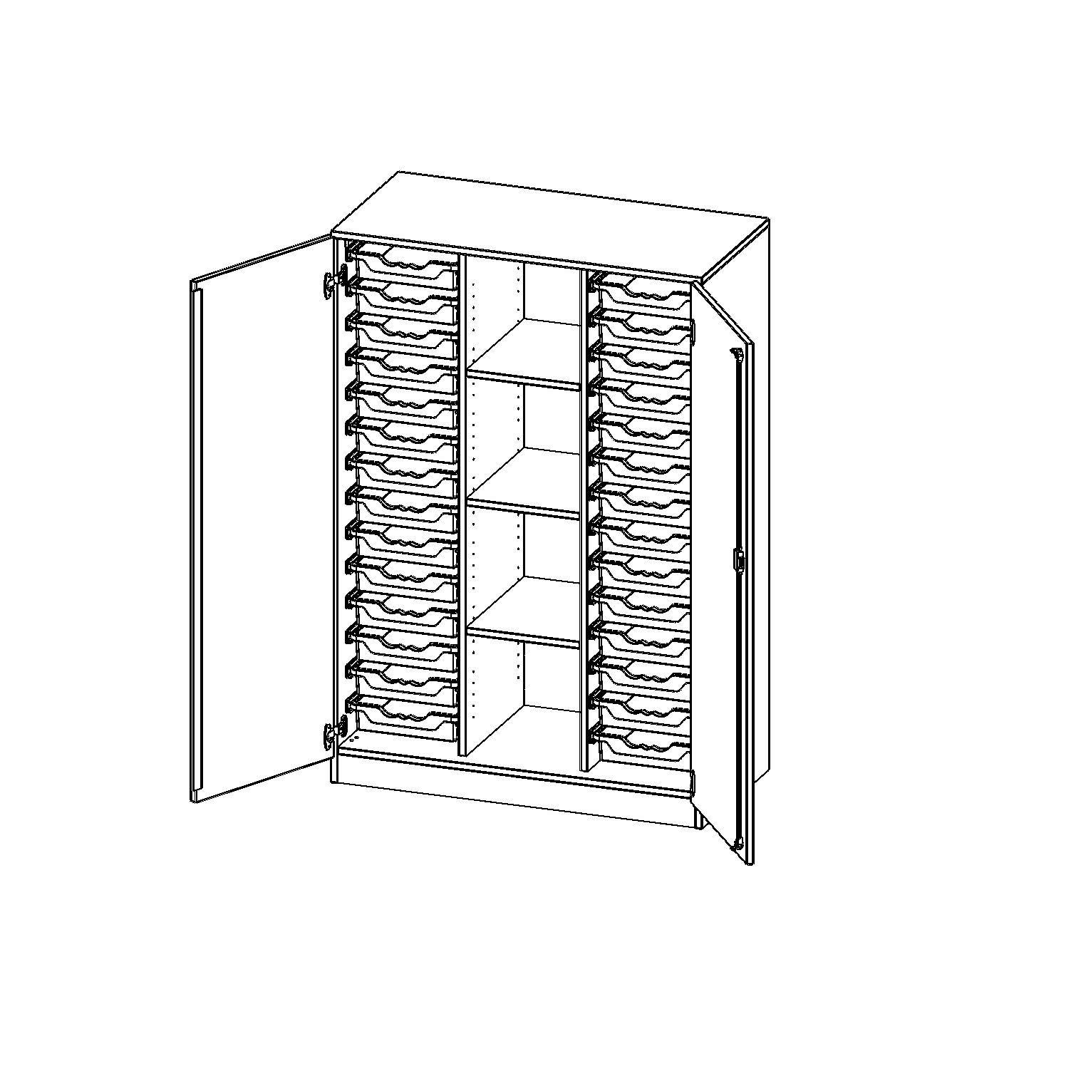 Alle Schränke werden aus melaminharzbeschichteter E1-Feinspanplatte gefertigt, die FSC zertifiziert und formaldehydfrei sind. Als Kanten verwenden wir besonders robuste 2 mm starke ABS Kanten, die unter hoher Temperatur fest verleimt werden. Bitte wählen Sie Ihr Wunschdekor aus unserer Dekorpalette aus. Die Einlegeböden sind im Raster von 32 mm verstellbar. Unsere hochwertigen Bodenträger verfügen über einen "Ausziehstop", so wird verhindert, dass Böden mit Inhalt darauf aus dem Regal oder Schrank rutschen können. Die Türen lassen sich dank 270° öffnender Scharniere an den Korpus anlegen. Sie sind mit einem Schloss verschließbar. An den Türen befindet sich eine Staublippe.