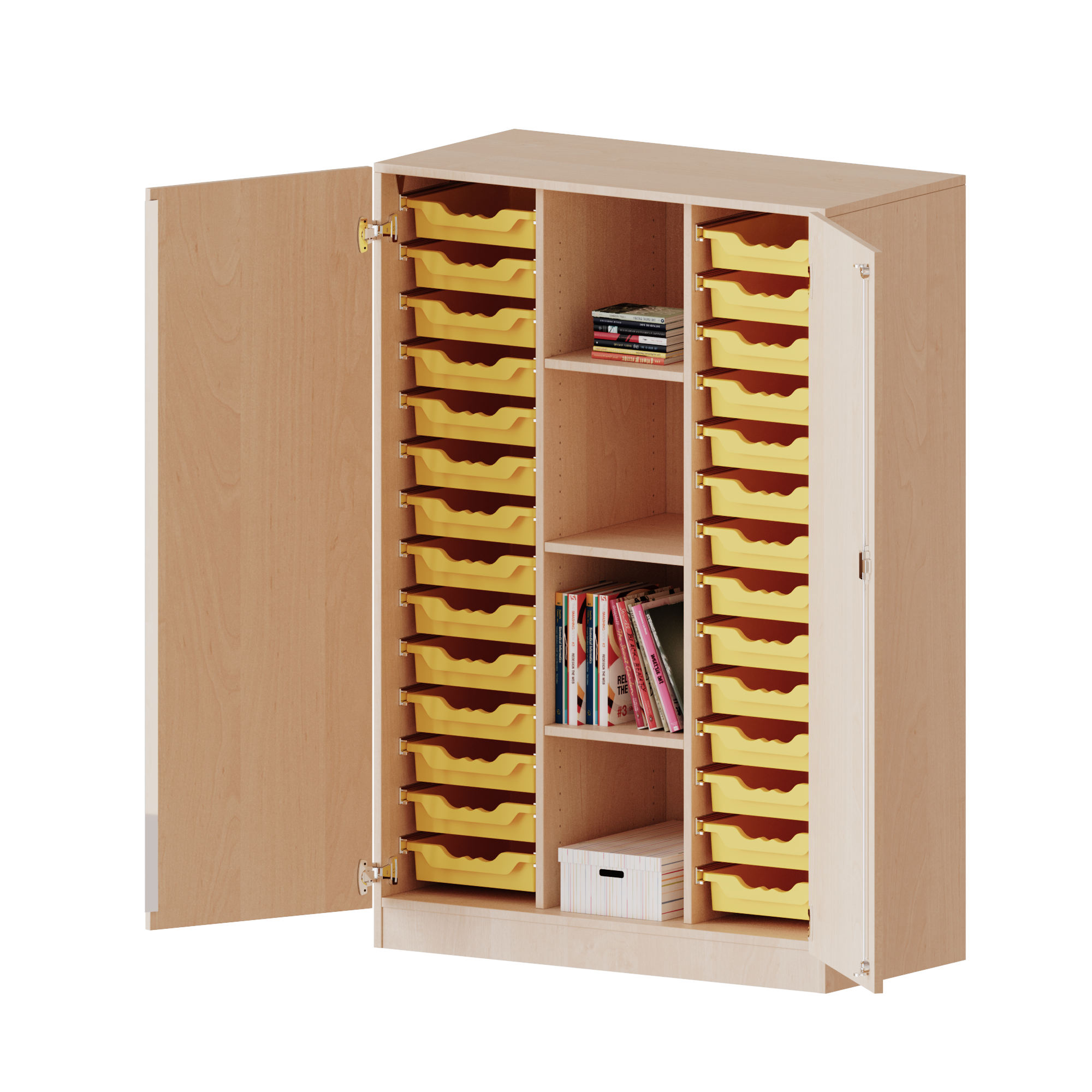 Die praktischen ErgoTray Boxen sind in 2 Höhen verfügbar - es gibt hohe und flache Boxen. Wir bieten im Rahmen der evo180 Serie viele Regale und Schränke mit ErgoTray Boxen an. Dass alles zusammen passt, finden Sie auch Schränke und Regale ohne Boxen, aber in den dazu passenden Breiten. Die Sideboards bis 3,5 Ordnerhöhen sind alle wahlweise mit Sockel, fahrbar oder mit stabilen Metallmöbelstellfüßen erhältlich. Die fahrbaren Sideboards verfügen über 4 Rollen, davon sind 2 feststellbar. Die ErgoTray Boxen sind in verschiedenen Farben erhältlich.