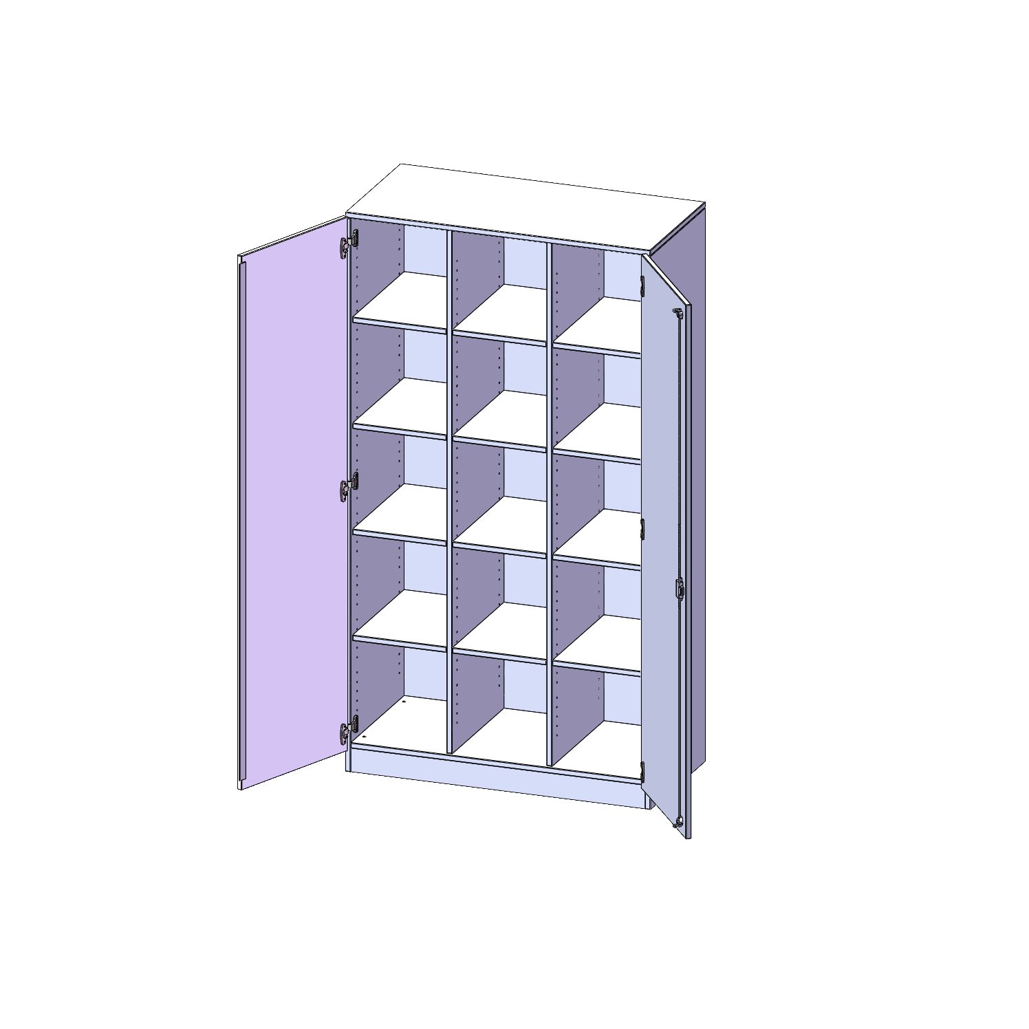 B/H/T: 104,5x190x50 cm, zweitürig, mit Sockel (81 mm), mit 2 Mittelwänden, ohne Boxen