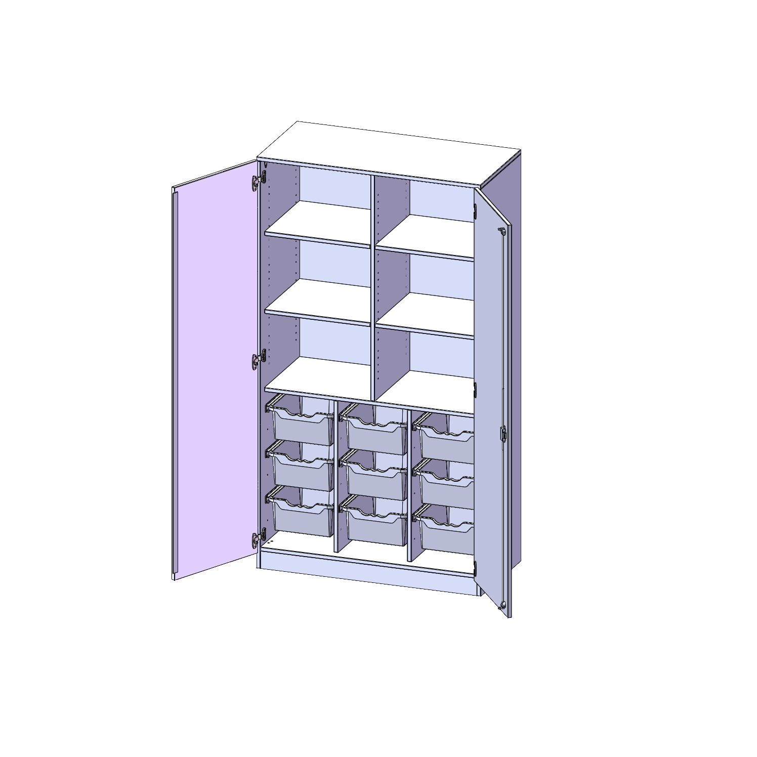 B/H/T: 104,5x190x50 cm, zweitürig, mit Sockel (81 mm), mit Mittelwand, mit 9 hohen ErgoTray Boxen