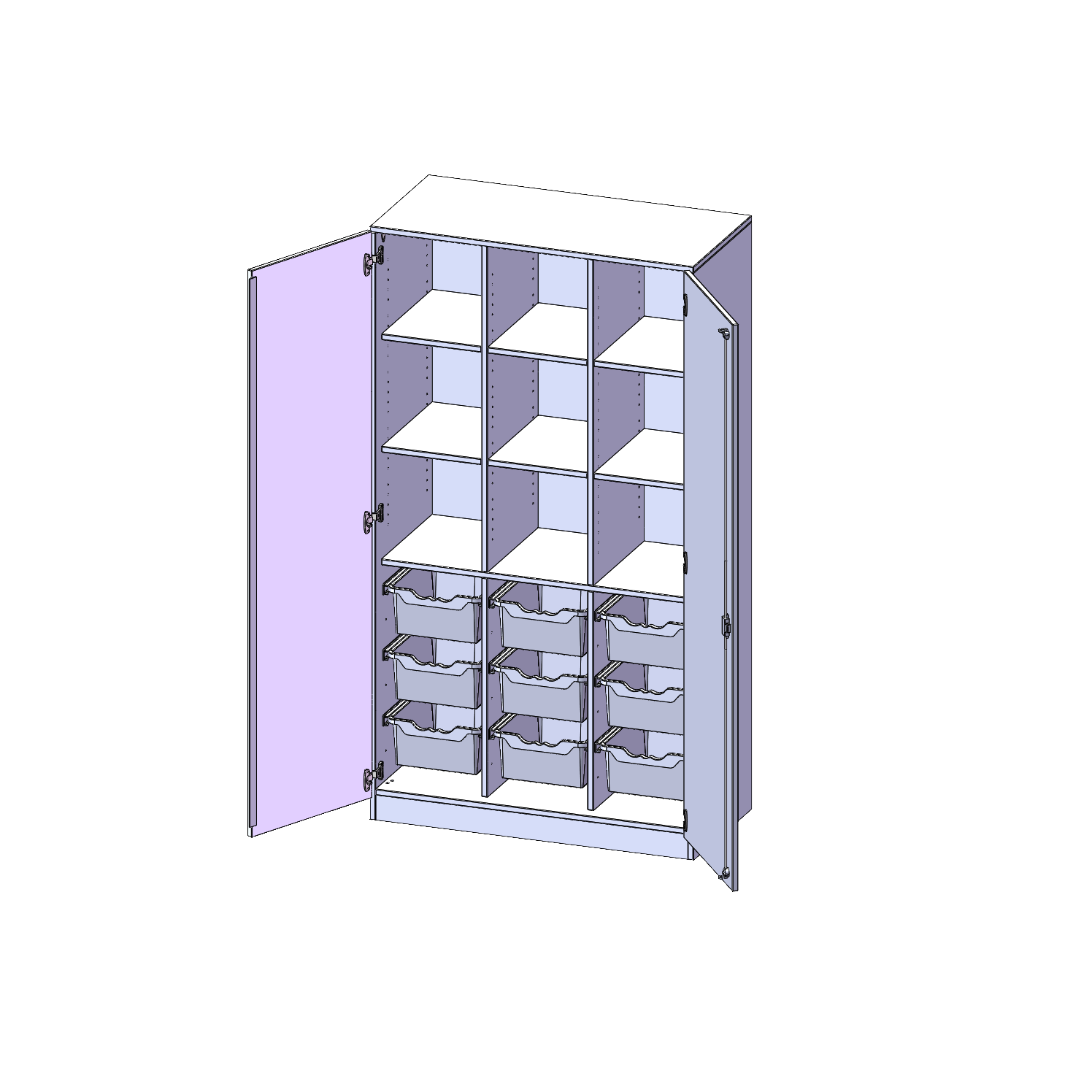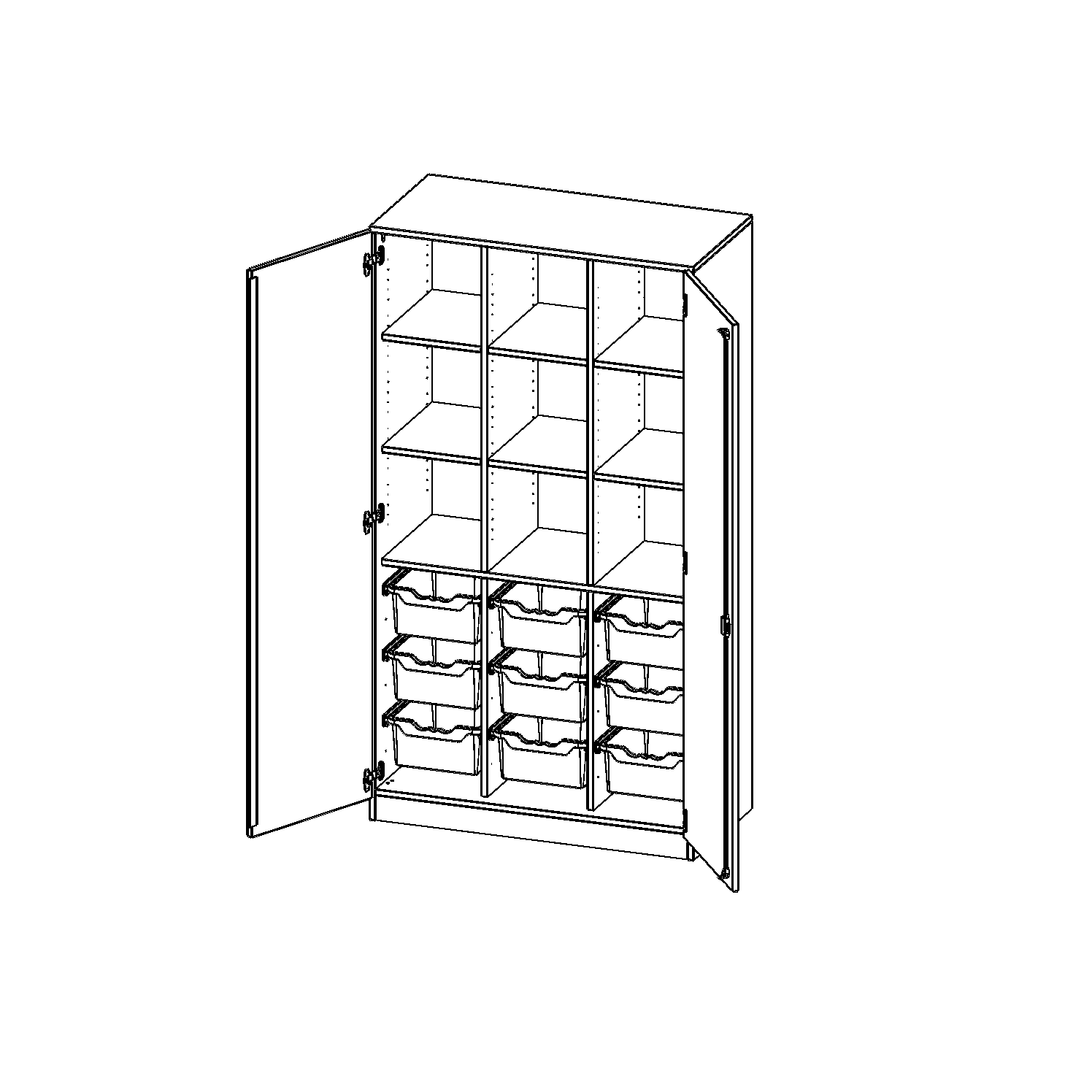 B/H/T: 104,5x190x50 cm, zweitürig, mit Sockel (81 mm), mit 2 Mittelwänden, mit 9 hohen ErgoTray Boxen