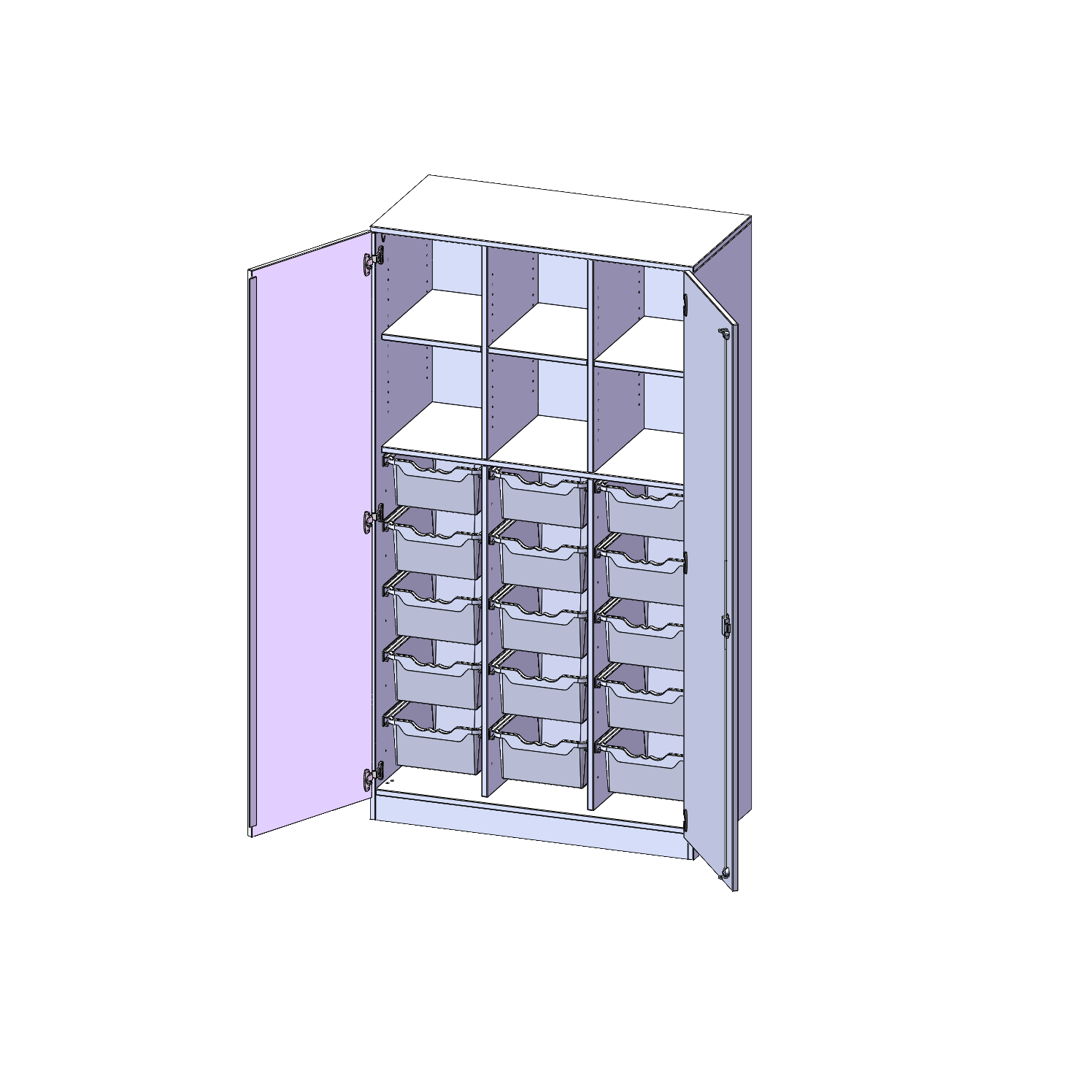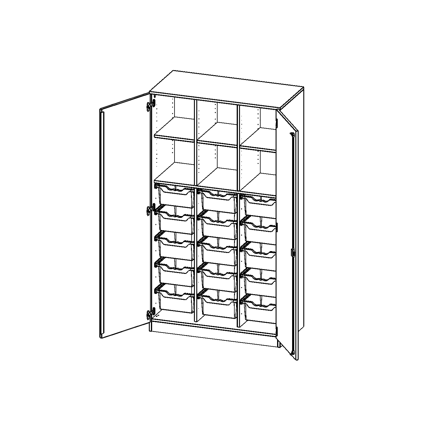 B/H/T: 104,5x190x50 cm, zweitürig, mit Sockel (81 mm), mit 2 Mittelwänden, mit 15 hohen ErgoTray Boxen