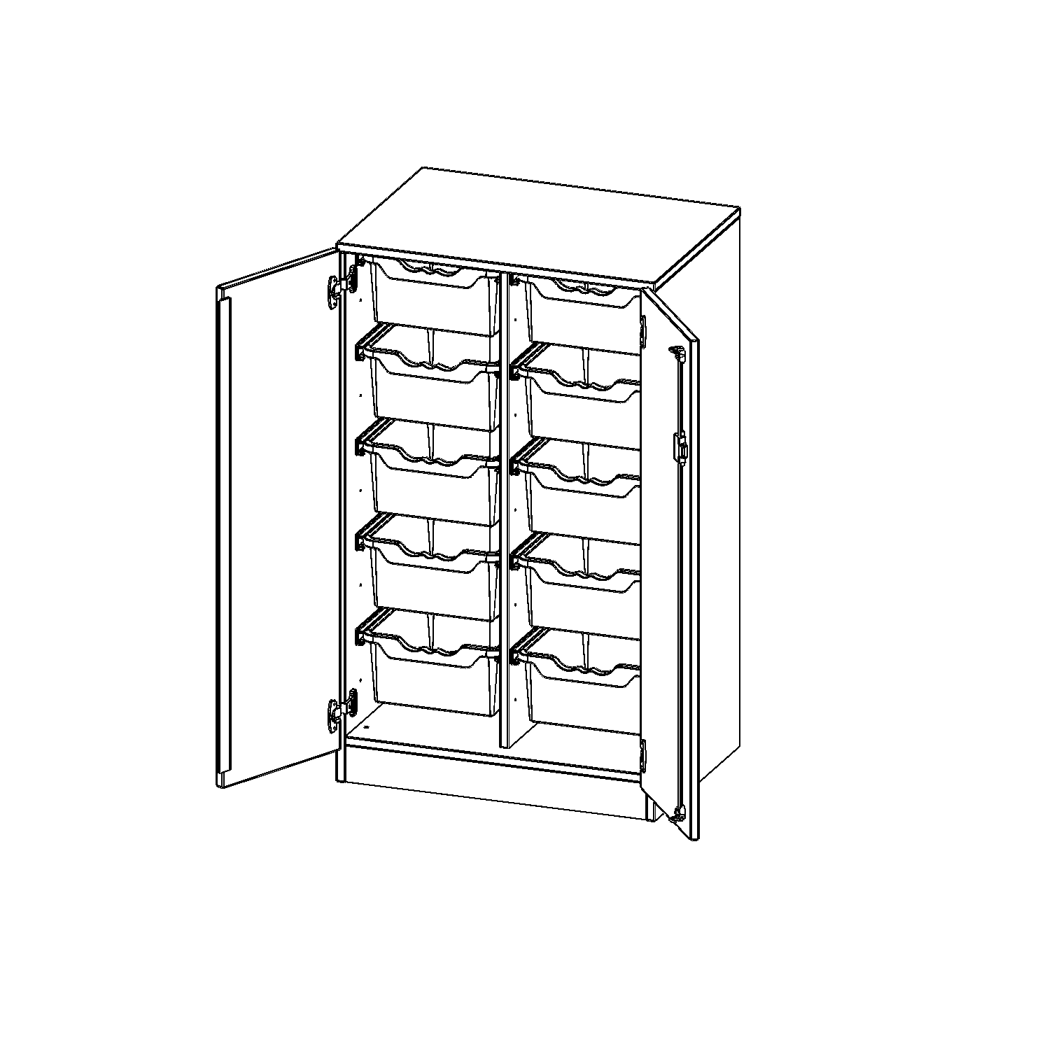 B/H/T: 70,3x118x50 cm, zweitürig, mit Sockel (81 mm), mit 10 hohen ErgoTray Boxen