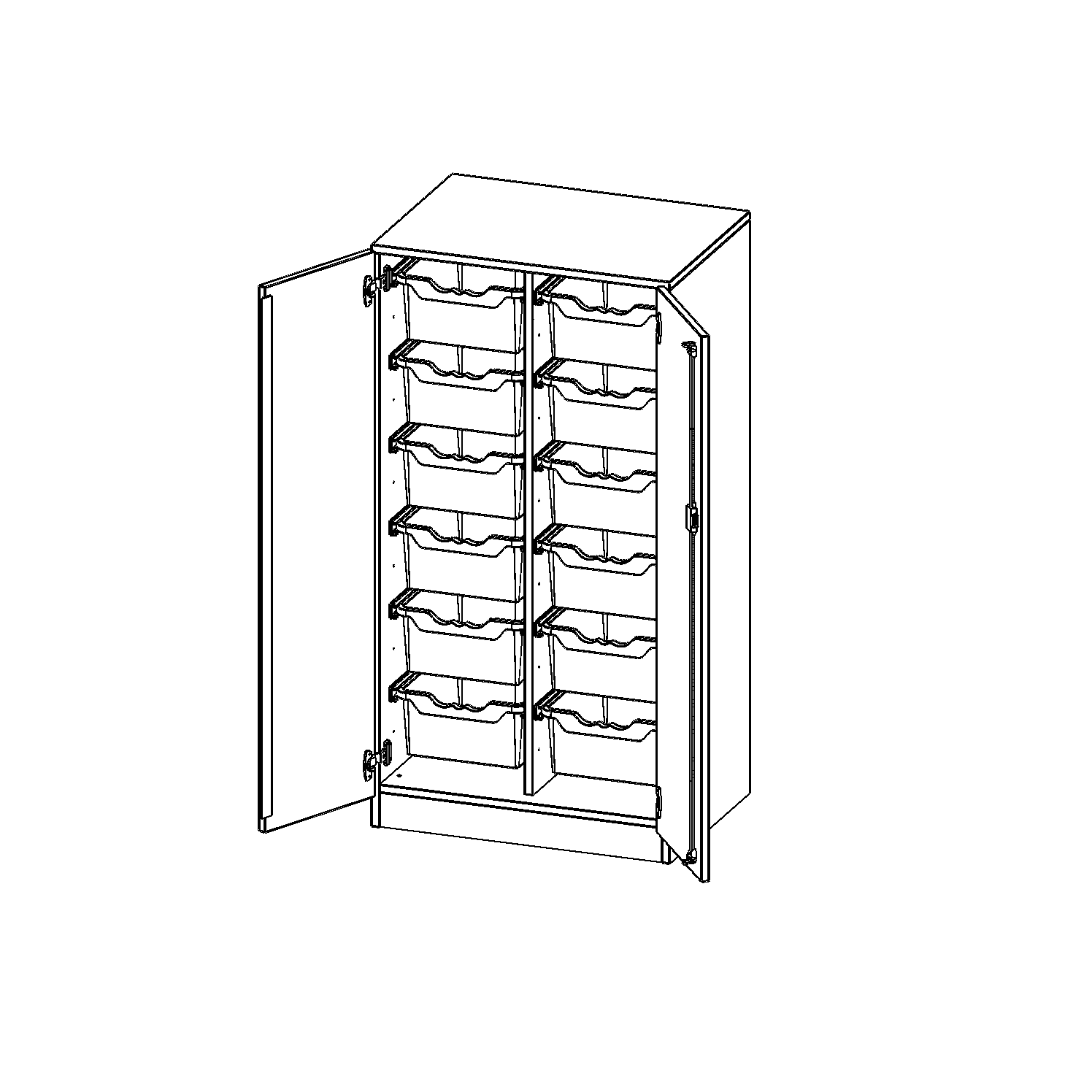 B/H/T: 70,3x136x50 cm, zweitürig, mit Sockel (81 mm), mit 12 hohen ErgoTray Boxen