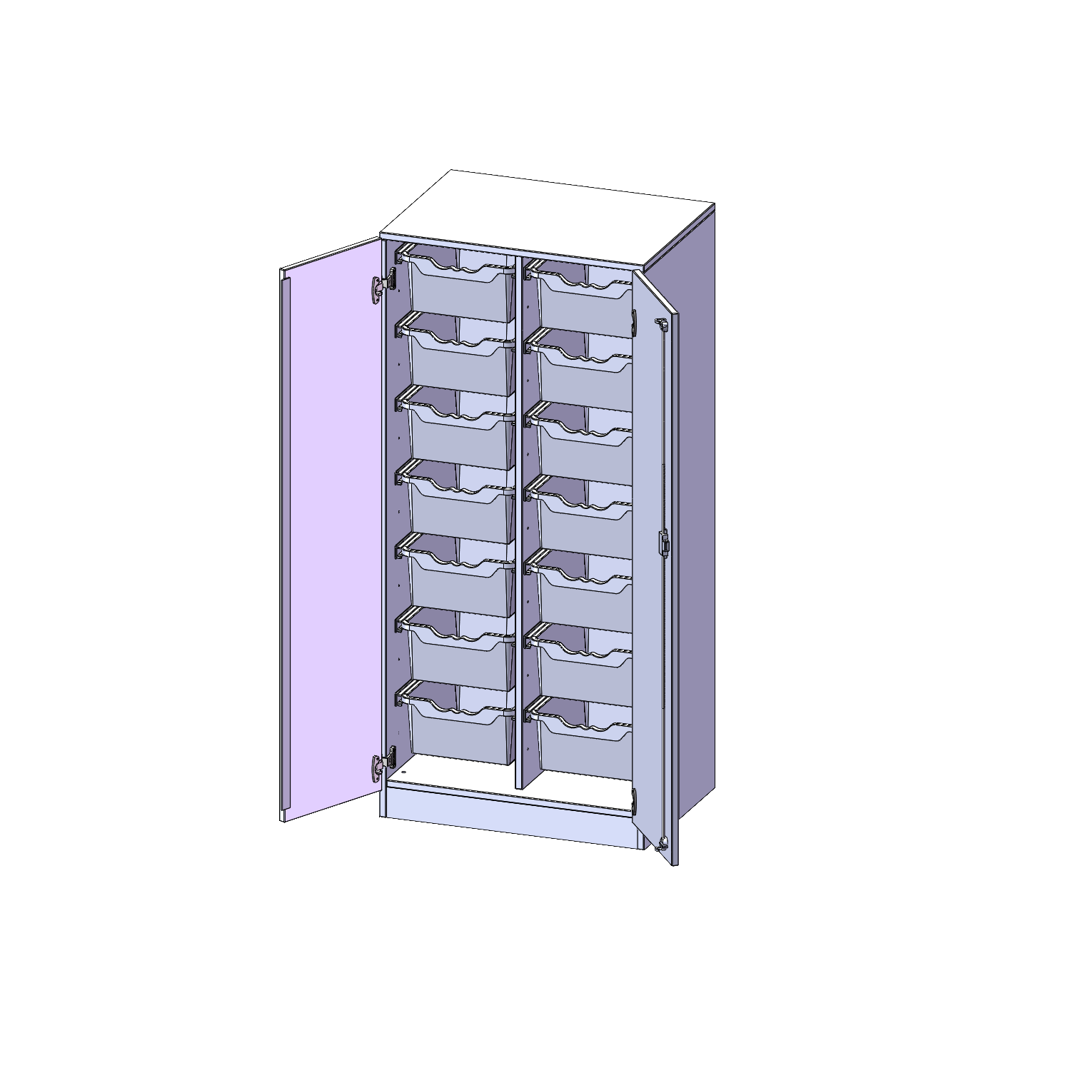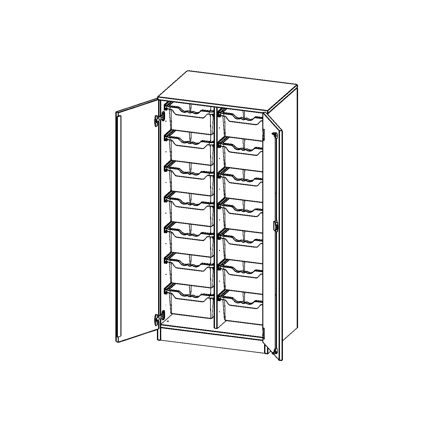 B/H/T: 70,3x154x50 cm, zweitürig, mit Sockel (81 mm), mit 14 hohen ErgoTray Boxen
