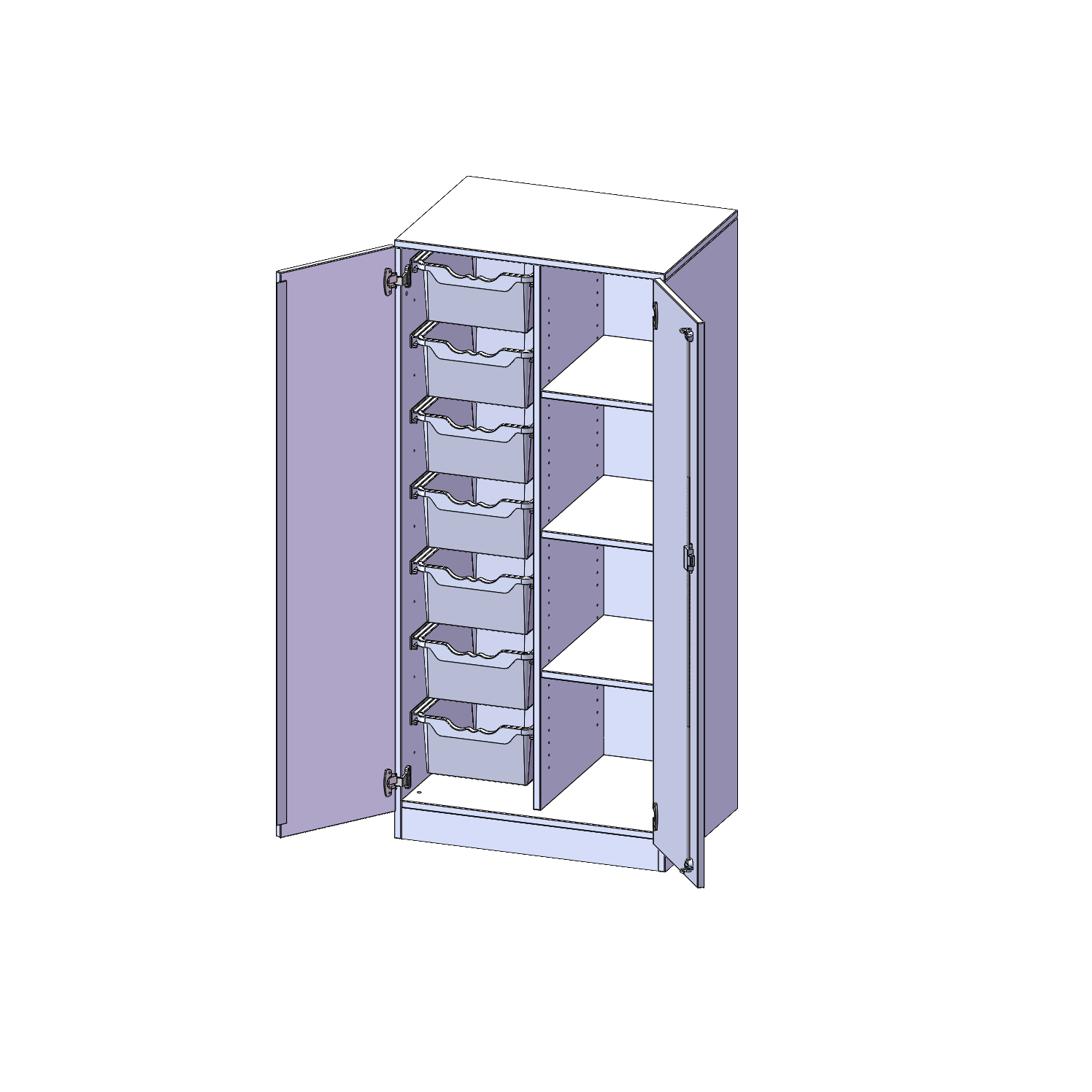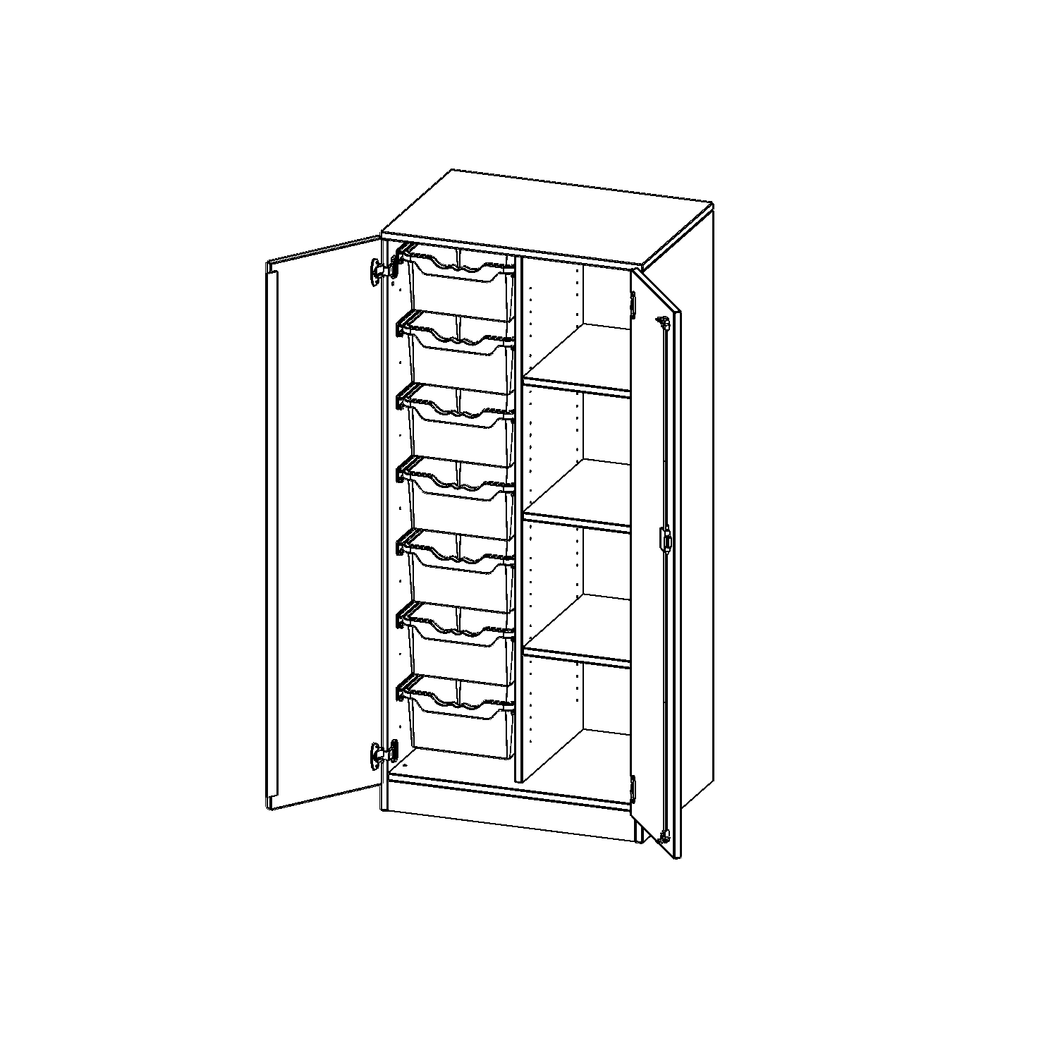 B/H/T: 70,3x154x50 cm, zweitürig, mit Sockel (81 mm), mit 7 hohen ErgoTray Boxen
