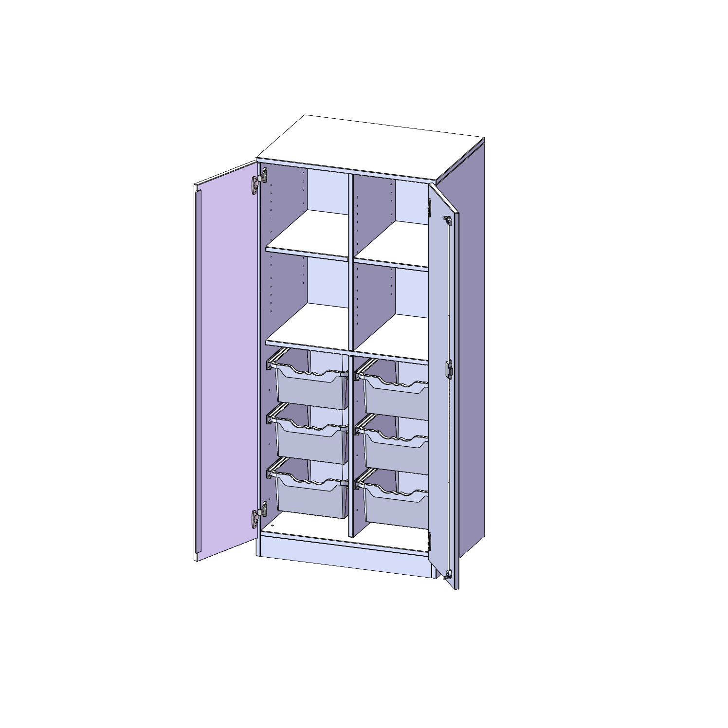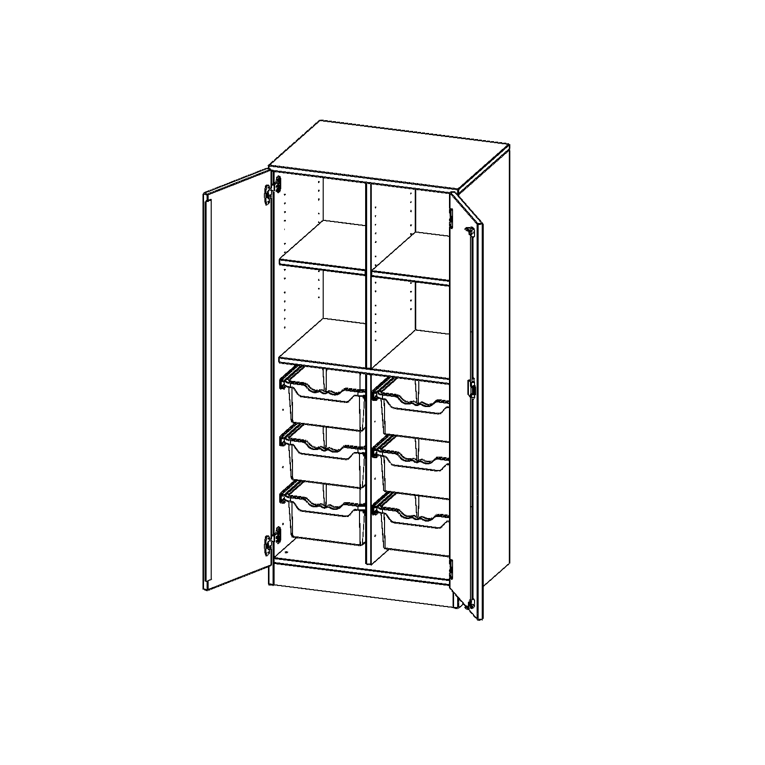 B/H/T: 70,3x154x50 cm, zweitürig, mit Sockel (81 mm), mit 6 hohen ErgoTray Boxen