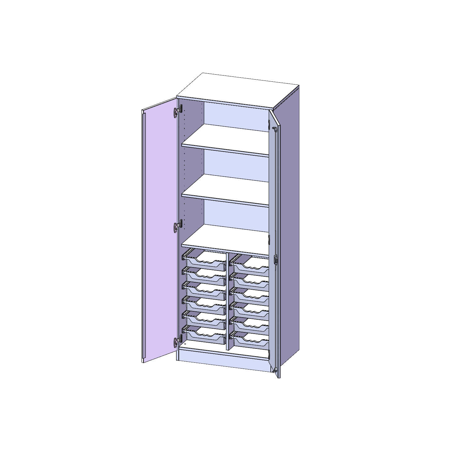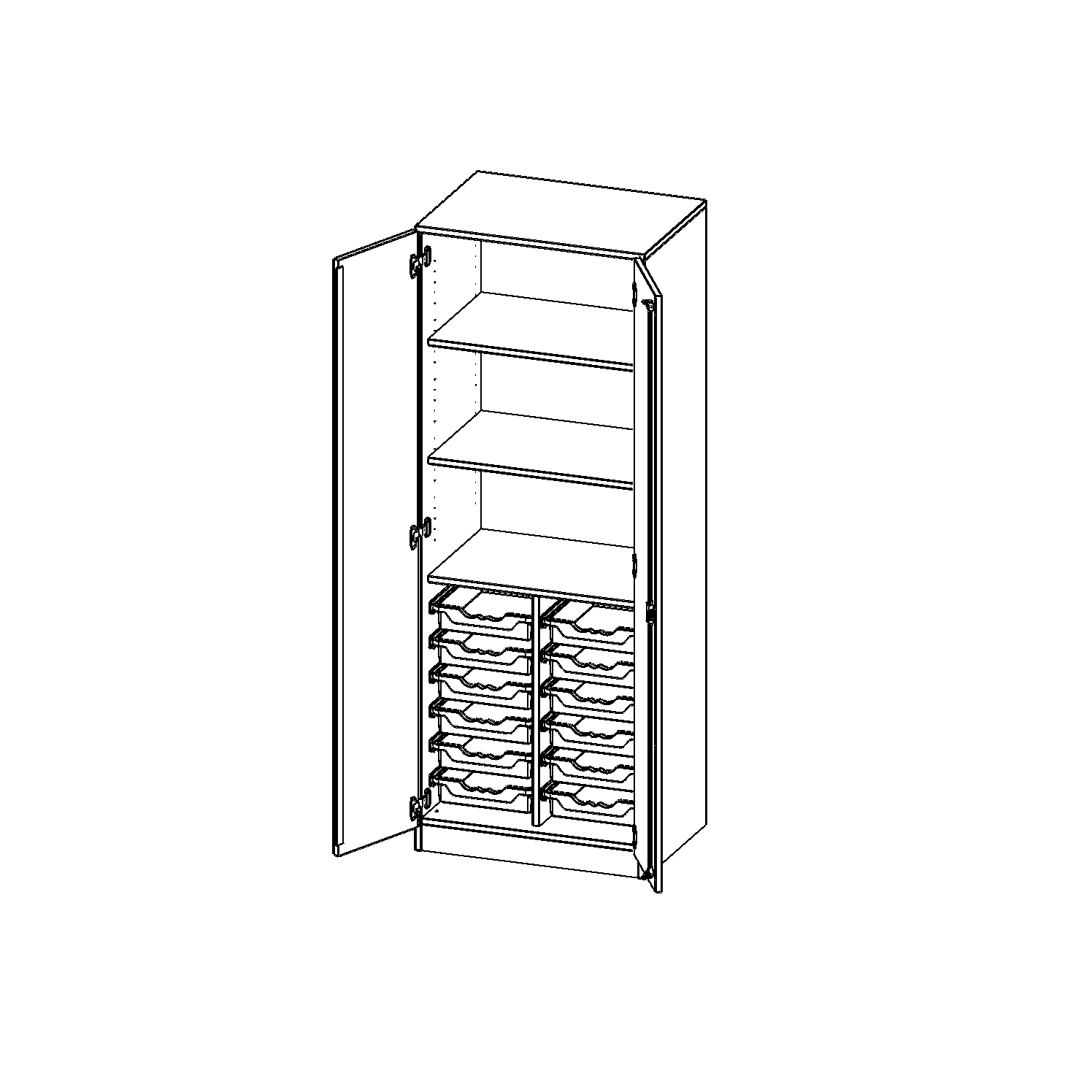 B/H/T: 70,3x190x50 cm, zweitürig, mit Sockel (81 mm), mit 12 flachen ErgoTray Boxen