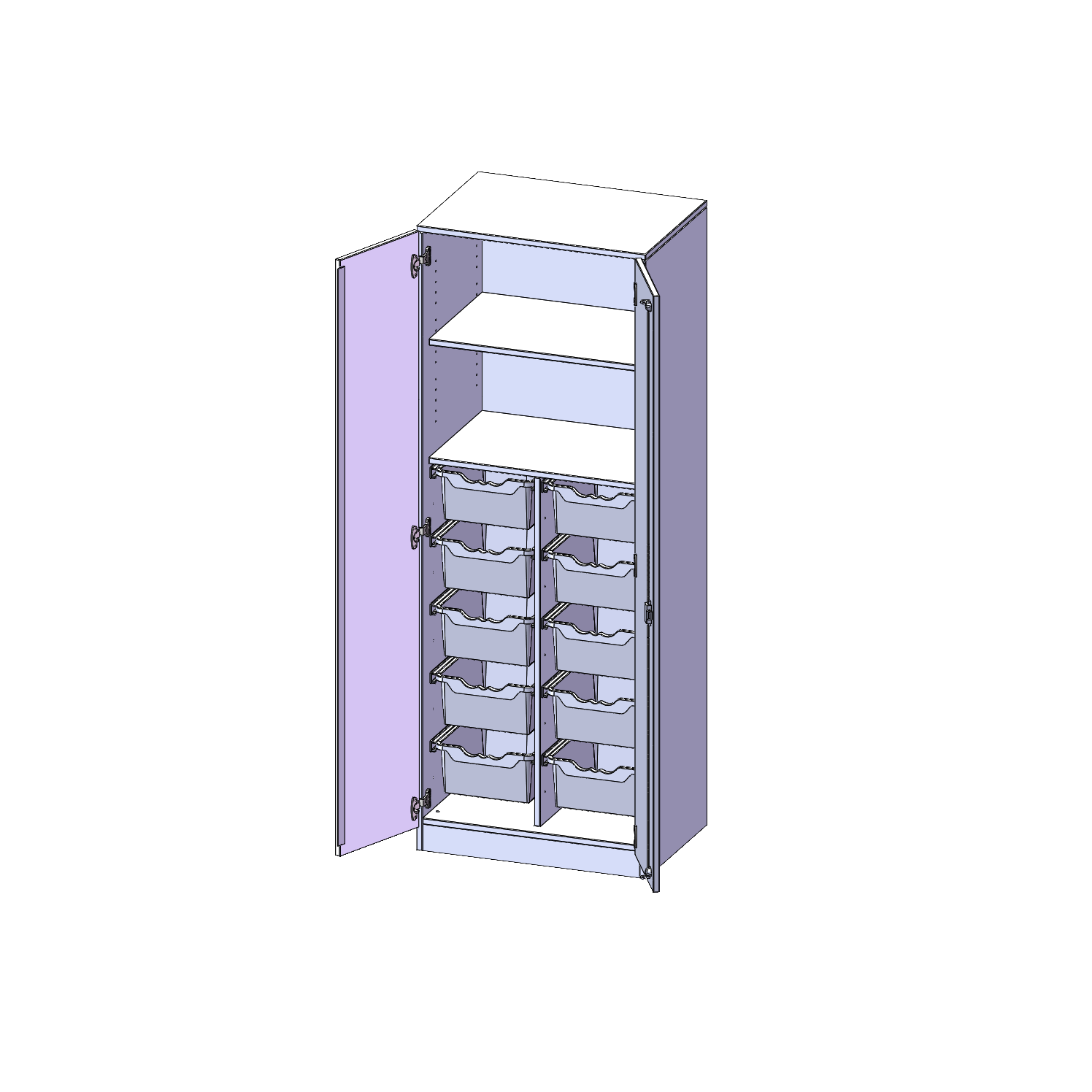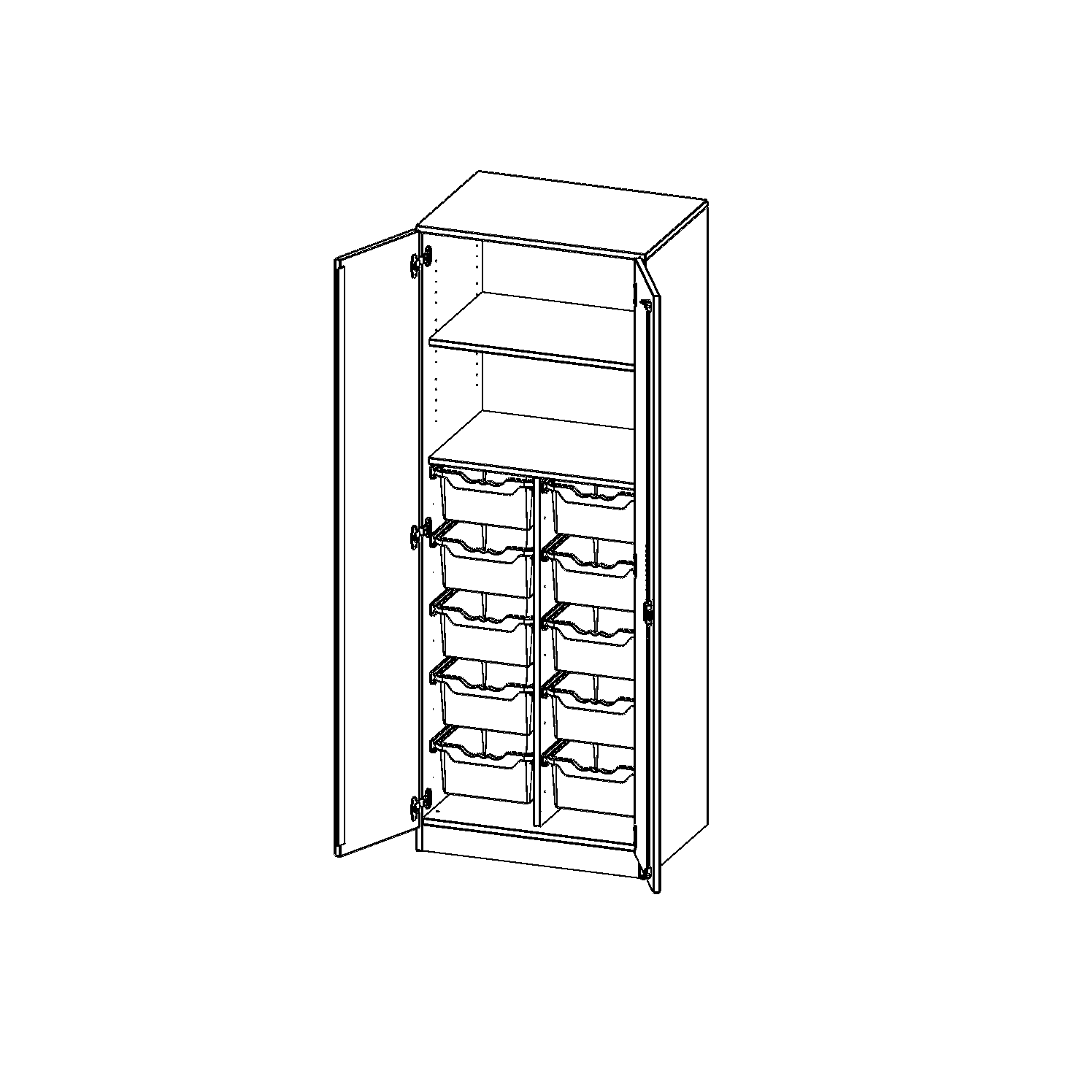 B/H/T: 70,3x190x50 cm, zweitürig, mit Sockel (81 mm), mit 10 hohen ErgoTray Boxen