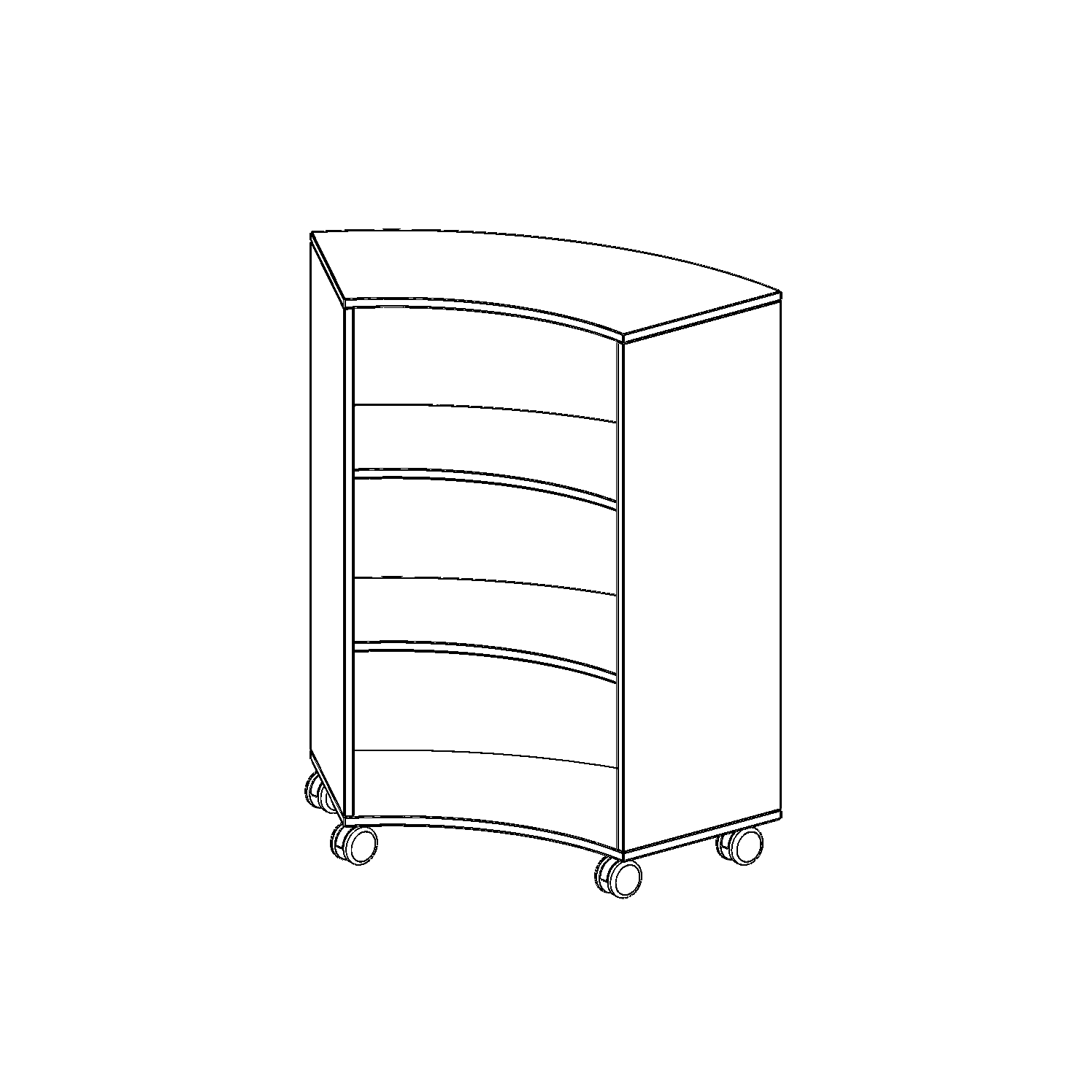 Die fahrbaren Viertel- & Sechstelkreisregale haben den Bogen raus! Mit ihrer Hilfe sind ganz besondere Regalkombinationen im Klassenzimmer oder in anderen Räumen möglich. Mit ihren 40 cm breiten Seiten lassen sie sich mit 40 cm tiefen Schränken und Regalen kombinieren. Die Rollen haben die selbe Höhe wie der Sockel aller anderen evo180 Schränke und Regale. Lassen Sie Ihrer Fantasie freien Lauf. Durch den Einsatz der 5. Rolle unter dem Bogenregal ist das Kipprisiko minimiert und ein sicheres Verfahren möglich.