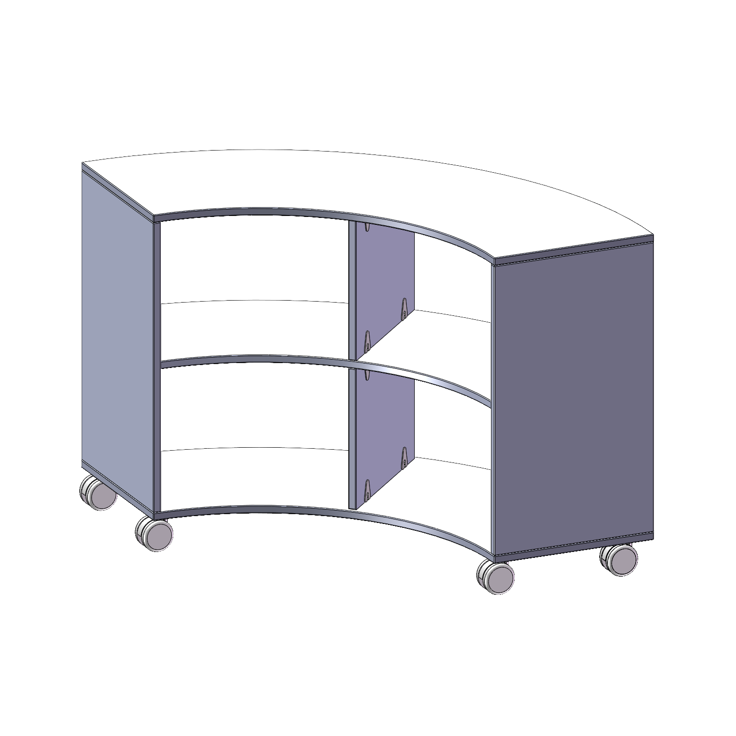 Die fahrbaren Viertel- & Sechstelkreisregale haben den Bogen raus! Mit ihrer Hilfe sind ganz besondere Regalkombinationen im Klassenzimmer oder in anderen Räumen möglich. Mit ihren 40 cm breiten Seiten lassen sie sich mit 40 cm tiefen Schränken und Regalen kombinieren. Die Rollen haben die selbe Höhe wie der Sockel aller anderen evo180 Schränke und Regale. Lassen Sie Ihrer Fantasie freien Lauf.
