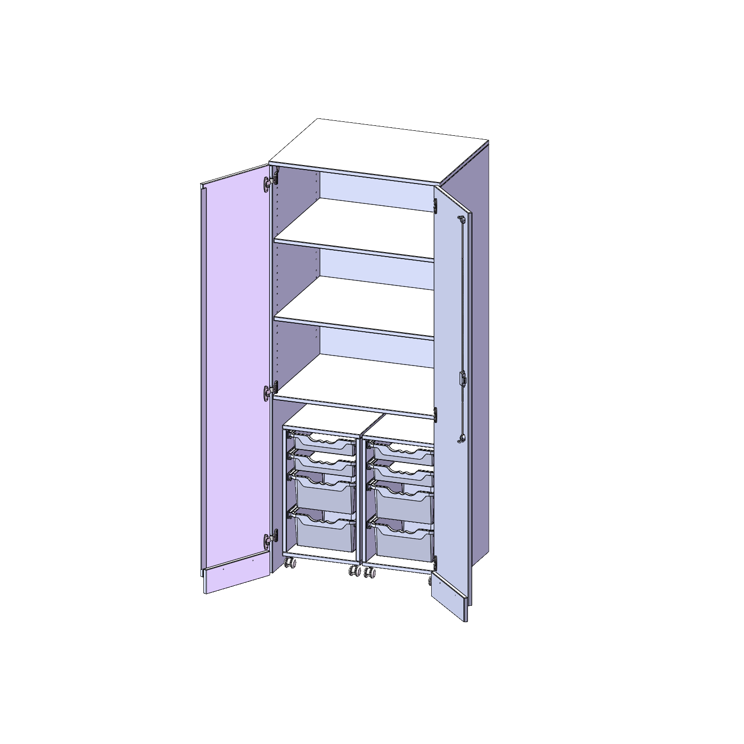 B/H/T: 80x190x60 cm, 2 Container mit je 2 flachen und 2 hohen ErgoTray Boxen