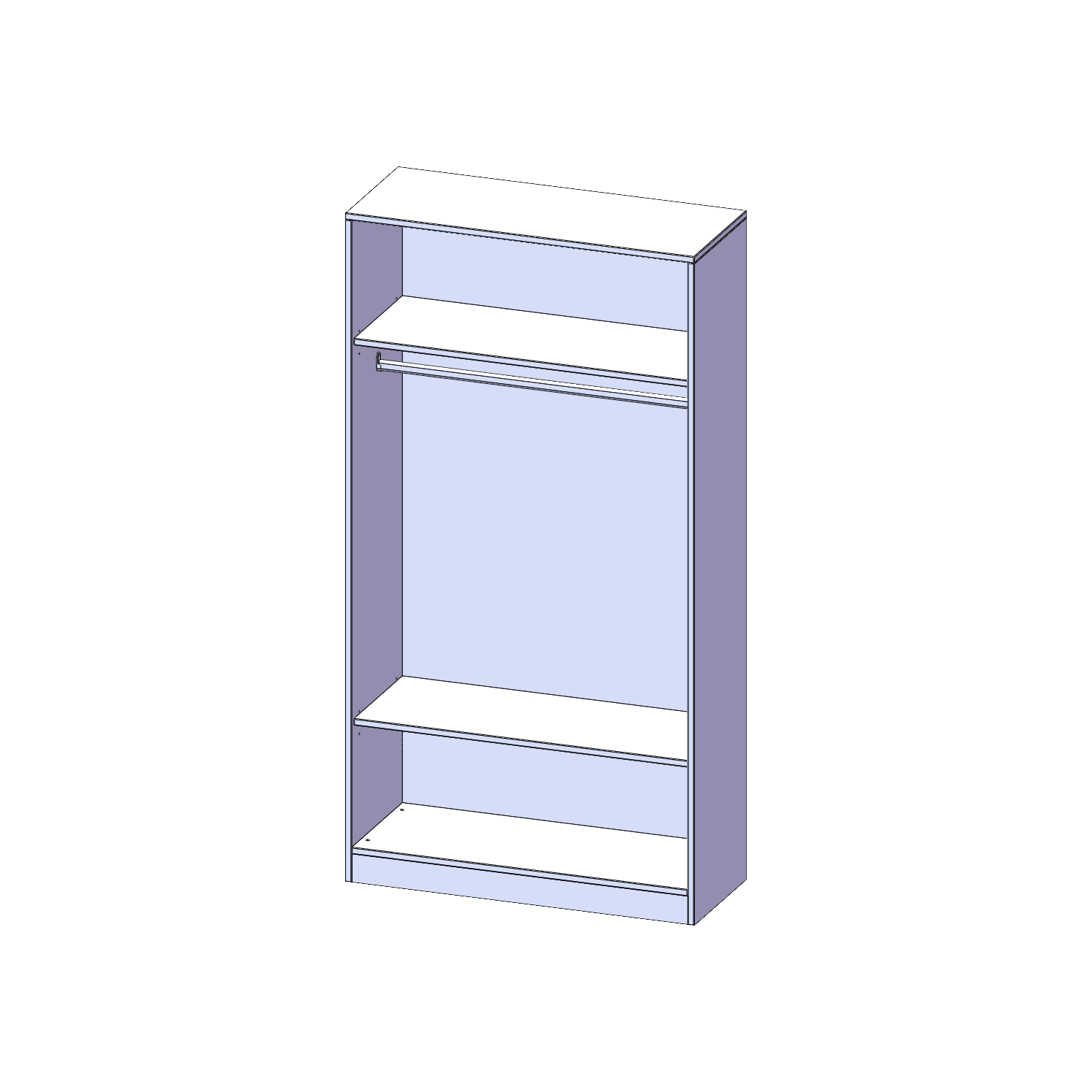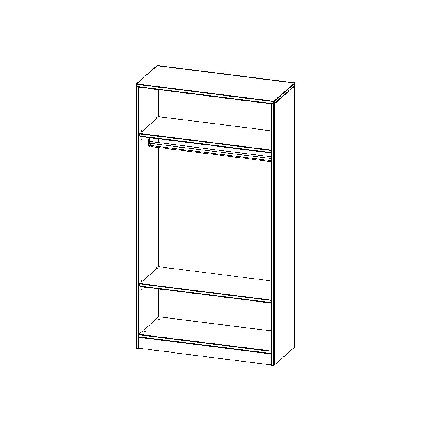 Im Regal befinden sich 2 Einlegeböden (Hut- und Schuhablage) sowie eine Kleiderstange.