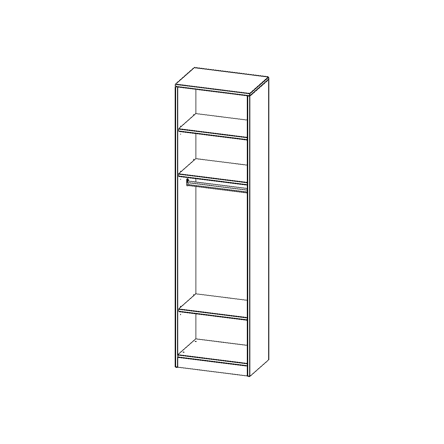 Im Regal befinden sich 2 Einlegeböden (Hut- und Schuhablage) sowie eine Kleiderstange.