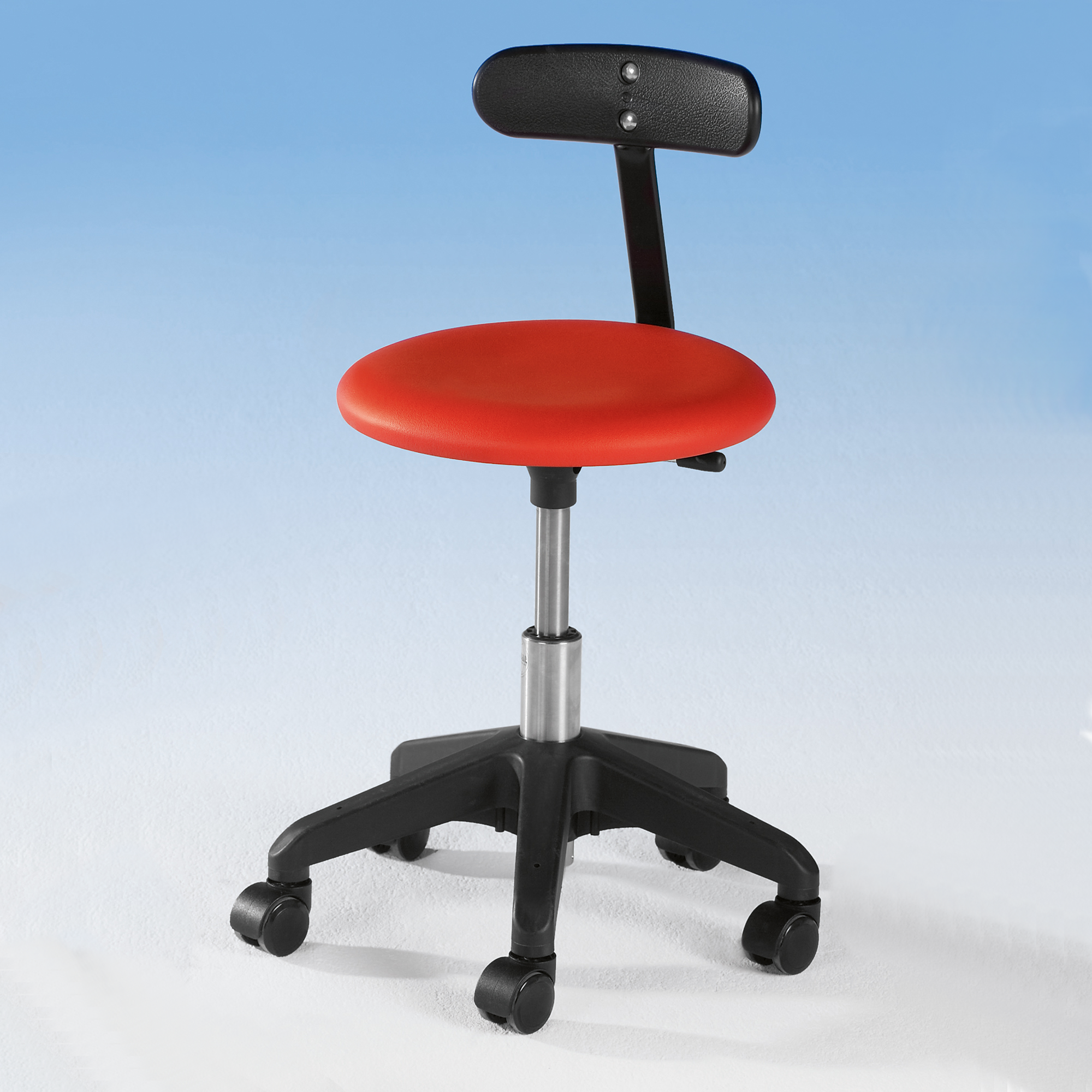 Unser Hocker "Carina" ist der perfekte Hocker für Erzieher/-innen. Er rollt super leicht, so sind Sie stets flexibel. Er lässt sich bis auf eine Höhe von 36 cm absenken so sind Sie mit den Kindern immer auf Augenhöhe. Mit praktischer Rückenlehne.